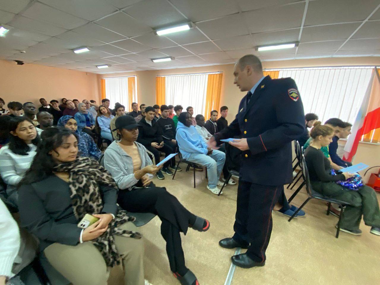 Профилактическую лекцию для более 80 иностранных студентов провел старший оперуполномоченный Управления по контролю за оборотом наркотиков ГУ МВД России по Саратовской области майор полиции Александр Куницын.