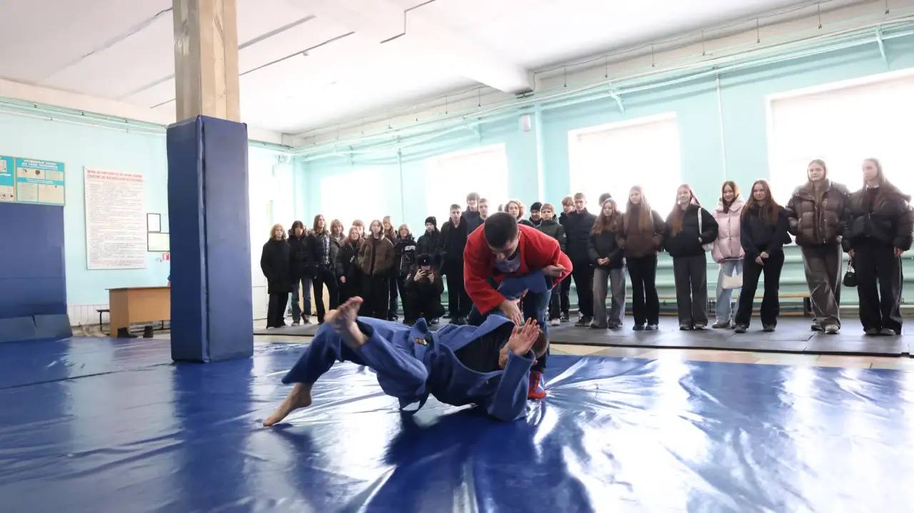 В этом молодые люди смогли убедиться воочию. В спортивном зале школьники застали отработку способов задержания и обезвреживания преступников. Полицейские специально для гостей показали несколько эффективных и безопасных приемов.