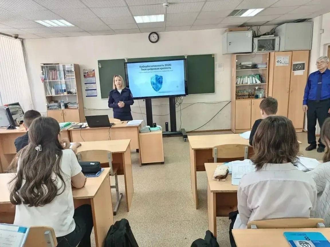 Полицейский рассказала школьникам о видах киберпреступлений, о том, какие уловки используют злоумышленники, как воздействуют на несовершеннолетних, чтобы вовлечь их преступную деятельность, как уберечься от мошенников, а также призвала быть бдительными при общении с незнакомцами.