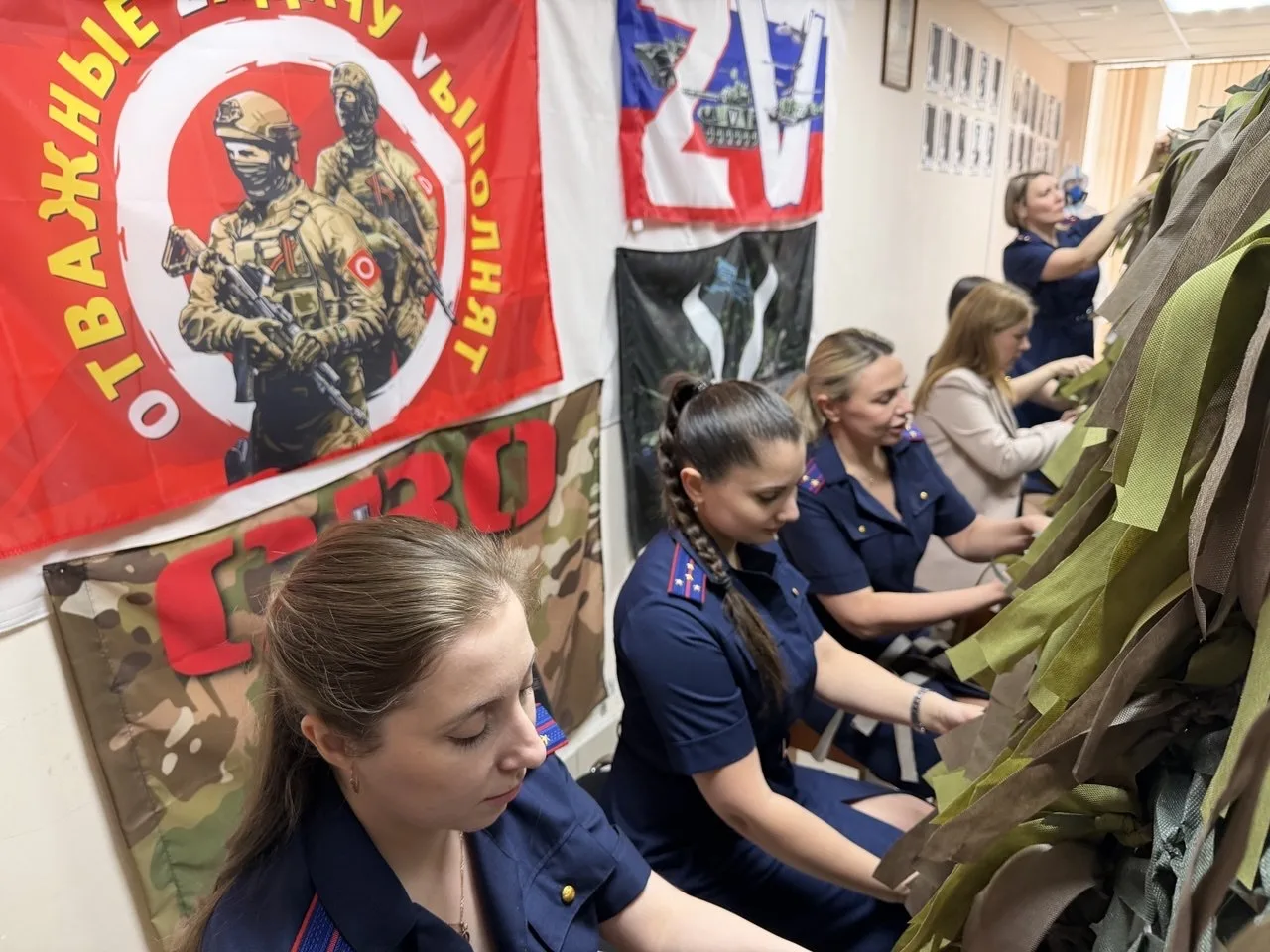 Под руководством опытных наставников члены Женского совета освоили техники плетения маскировочных сетей — процесс, требующий внимания, терпения и слаженной работы.