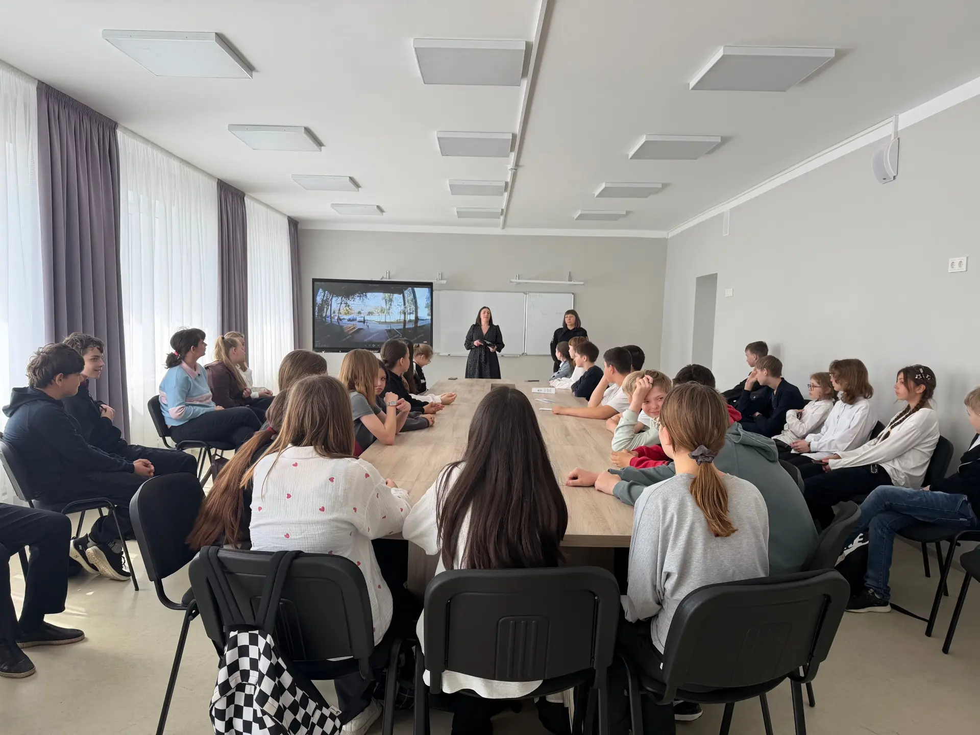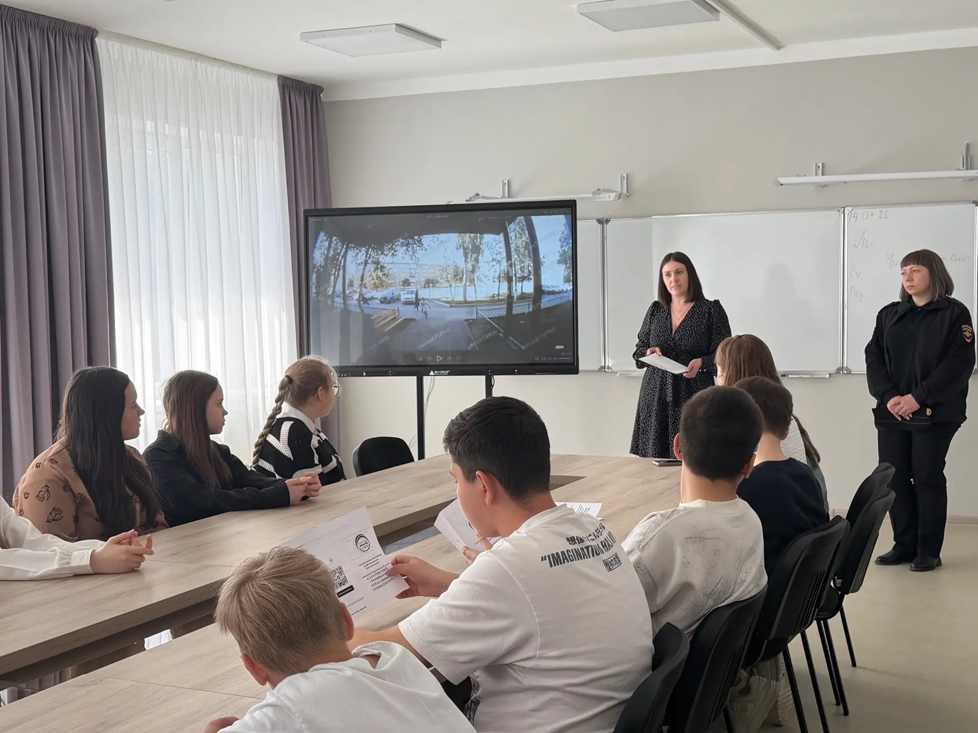 Юным пешеходам проинформировали о важности соблюдения мер предосторожности при переходе дороги, о правилах поведения вблизи дороги и в общественном транспорте.