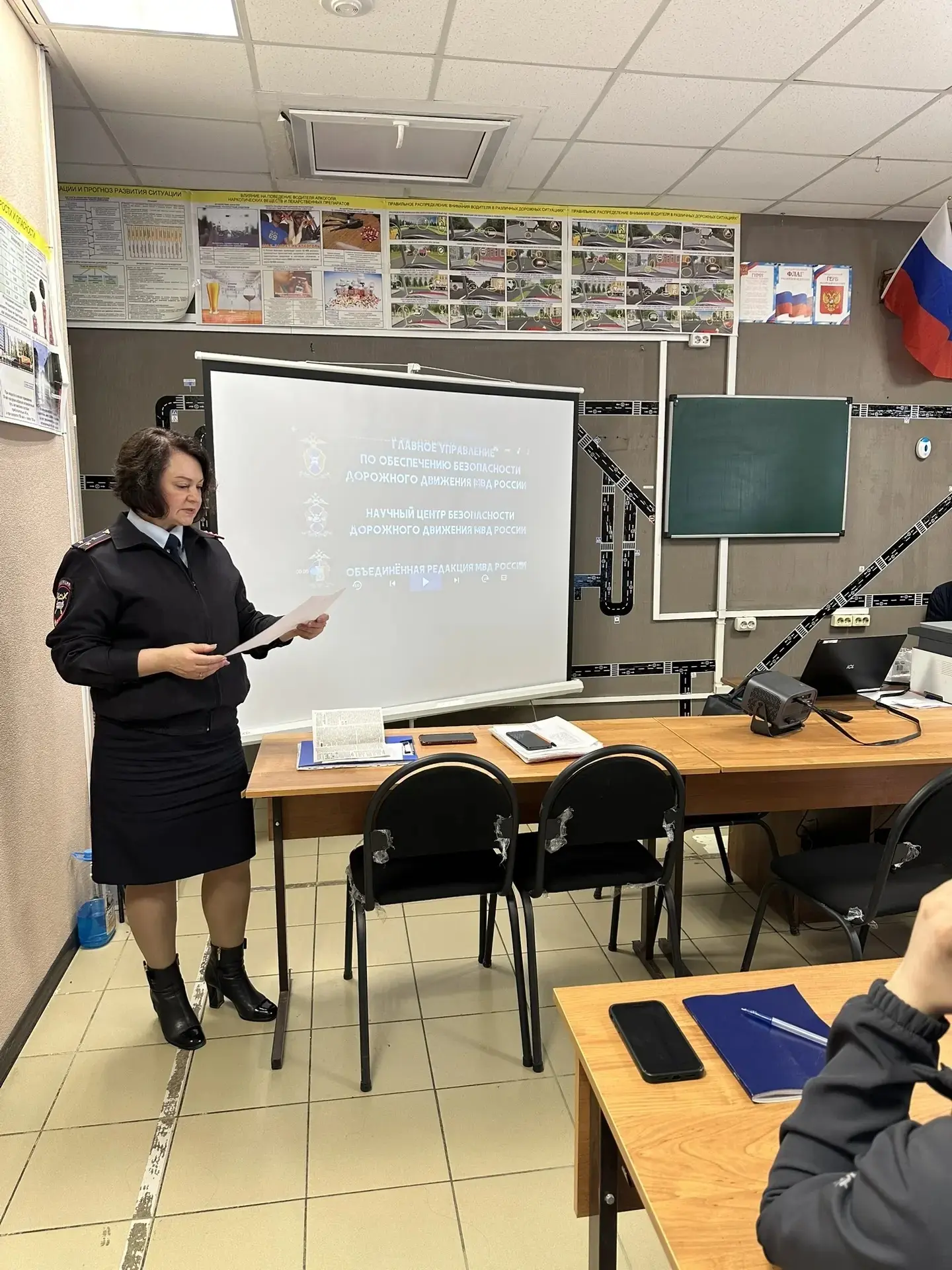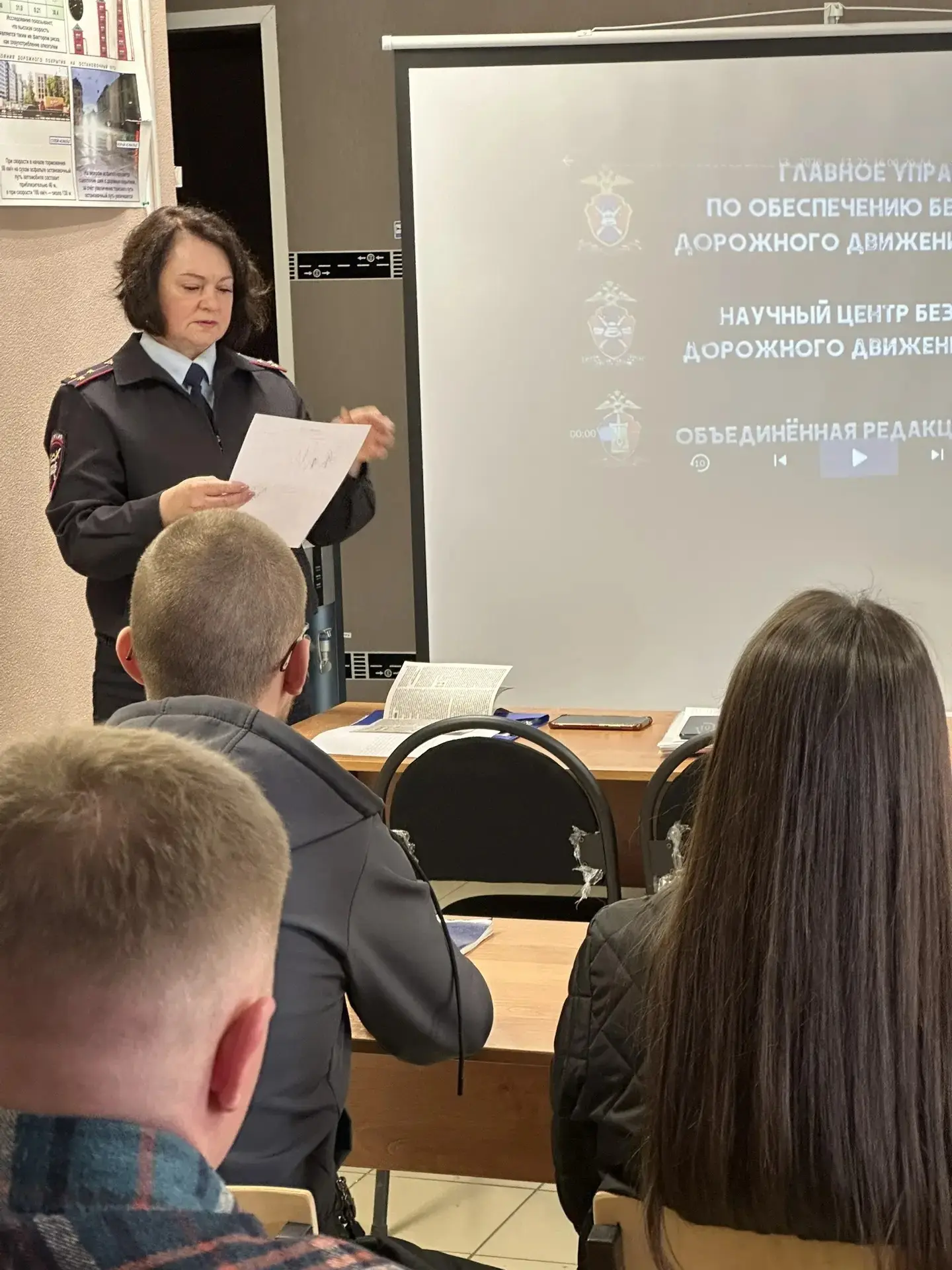 С курсантами полицейский провели инструктаж, в рамках которого будущим водителям напомнили