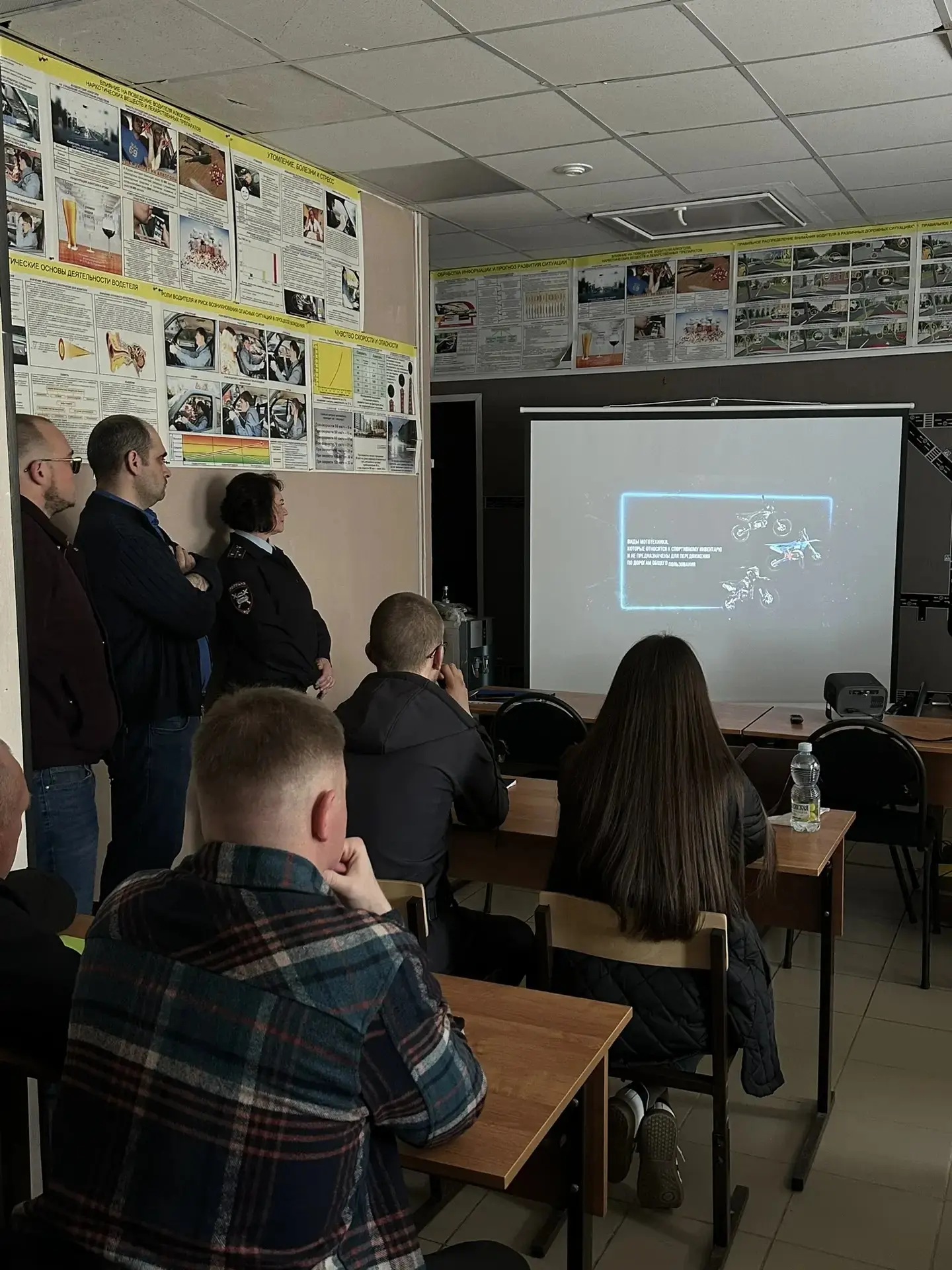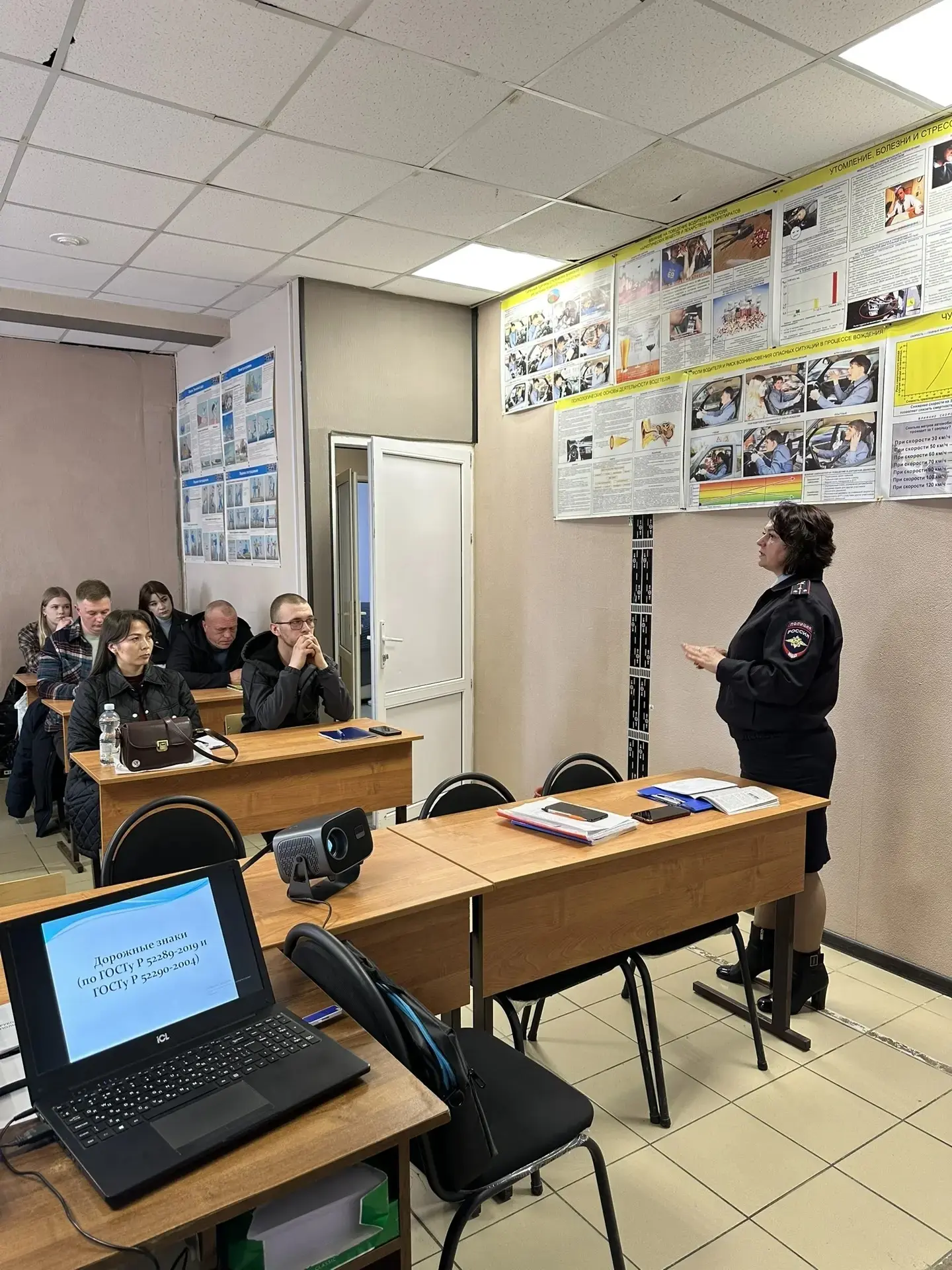 с участием водителей, стаж вождения которых менее 2-х лет, соблюдения ими правил дорожного движения госавтоинспекторами была организована встреча с курсантами автошколы.