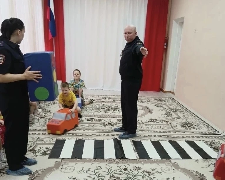 Инспектор по пропаганде по безопасности дорожного движения отделения Госавтоинспекции старший лейтенант полиции Алексей Левин и старший инспектор по делам несовершеннолетних ОМВД России по Аткарскому району майор полиции Наталья Власова с использованием игрового оборудования, провели обучающее занятие для детей.