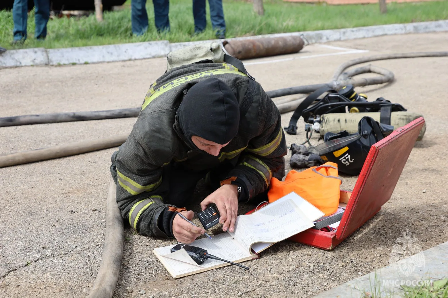 От теории к практике. Практических этапов несколько, организаторы меняют их каждый год. На этот раз пожарные эвакуируют с 3-го этажа башни манекен весом в 70 килограммов. Затем прокладывают магистральную линию и тушат условное возгорание.