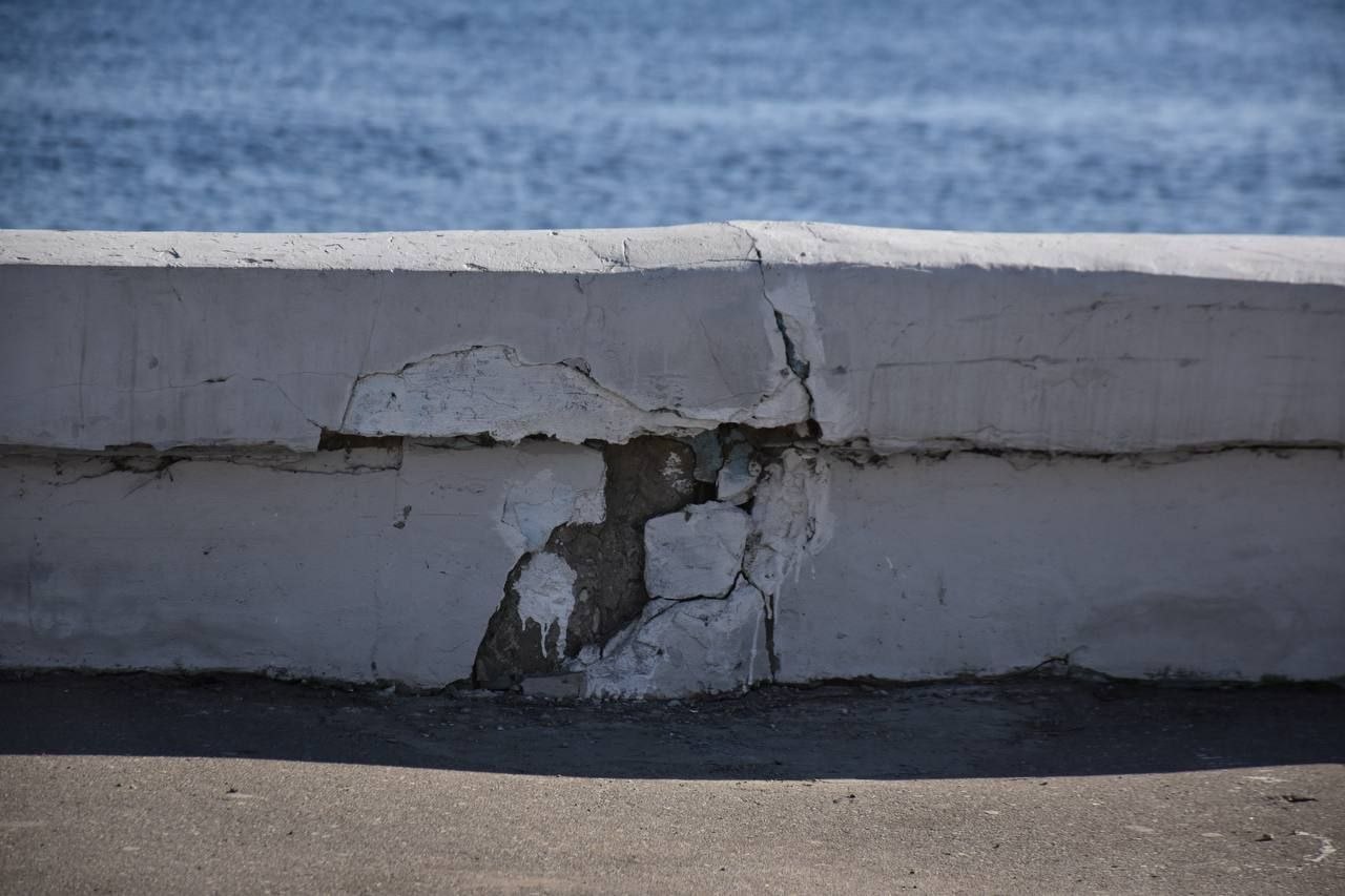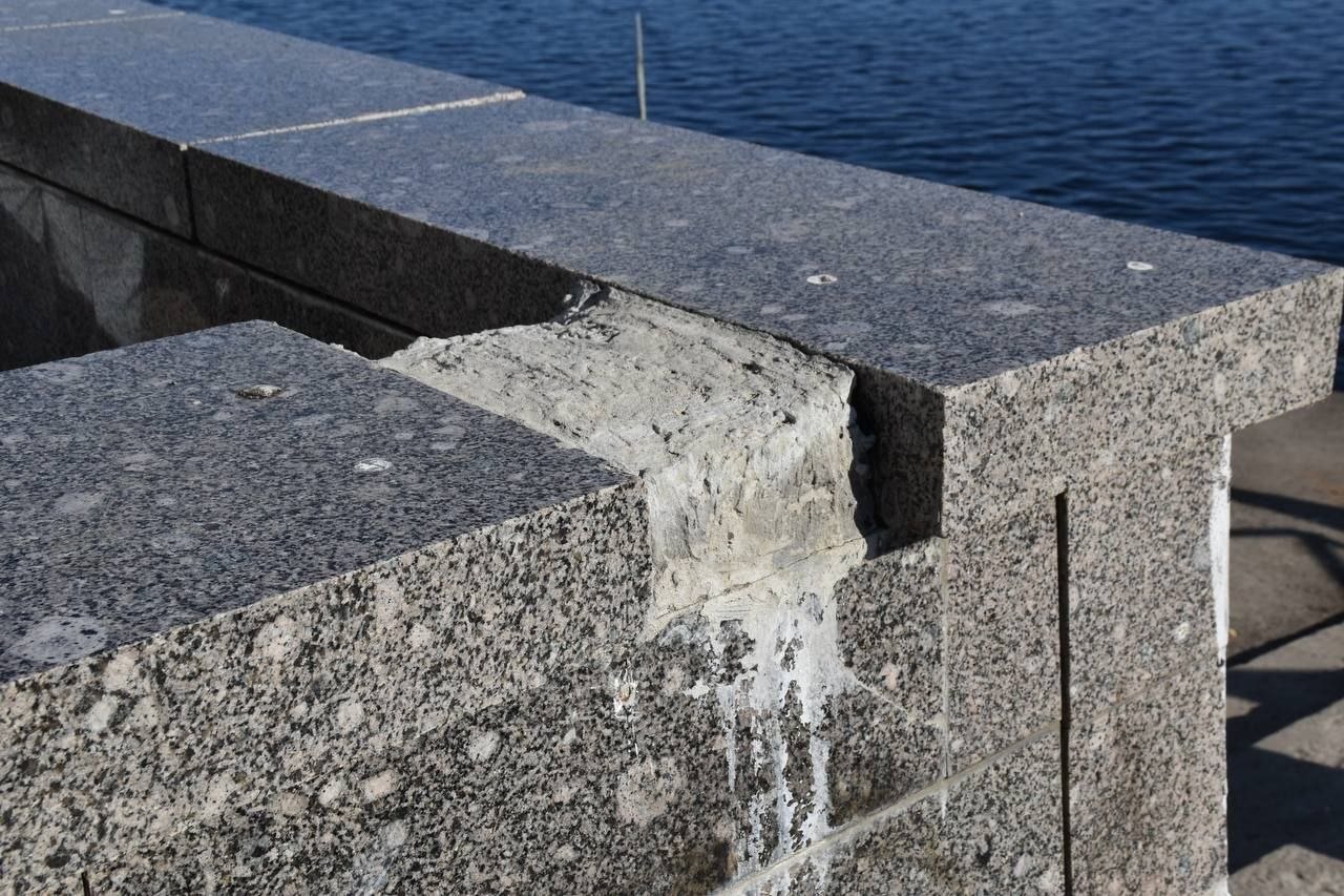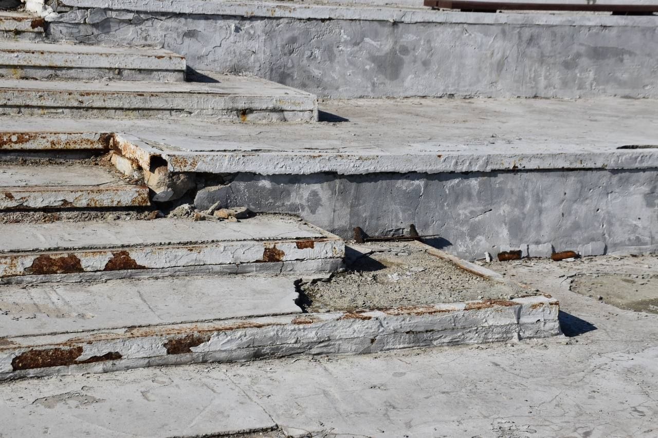 Ступени крошатся, асфальт в трещинах и ямах, граффити облупились, лавочки выцвели, плитка на Ротонде превращается в крошку. Причём опасные места даже не огорожены.