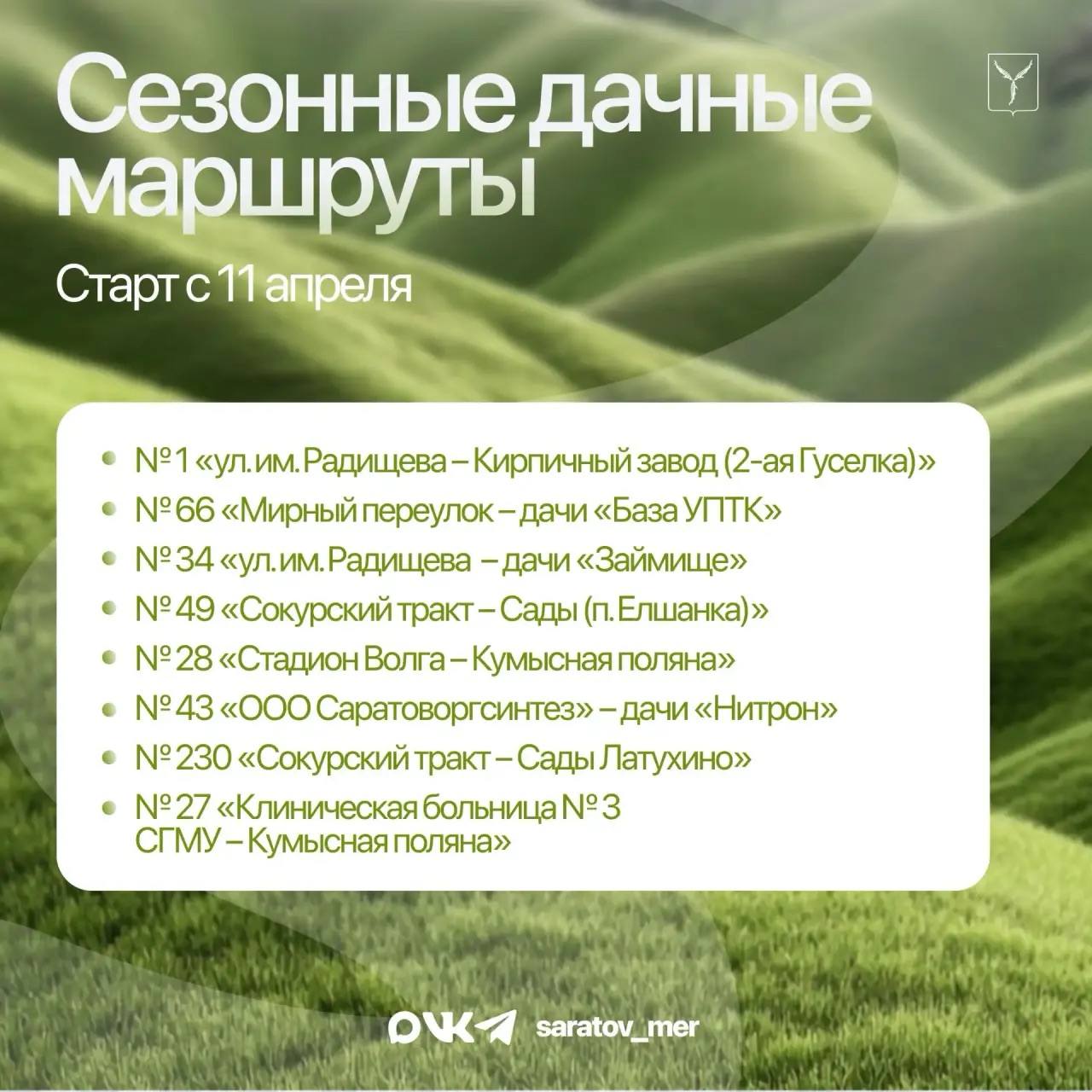 Актуальный список маршрутов – в карточке.