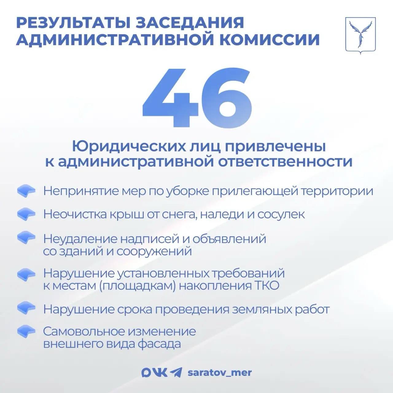 Состоялось очередное заседание административной комиссии муниципального образования «Город Саратов», в ходе которого было рассмотрено 193 дела