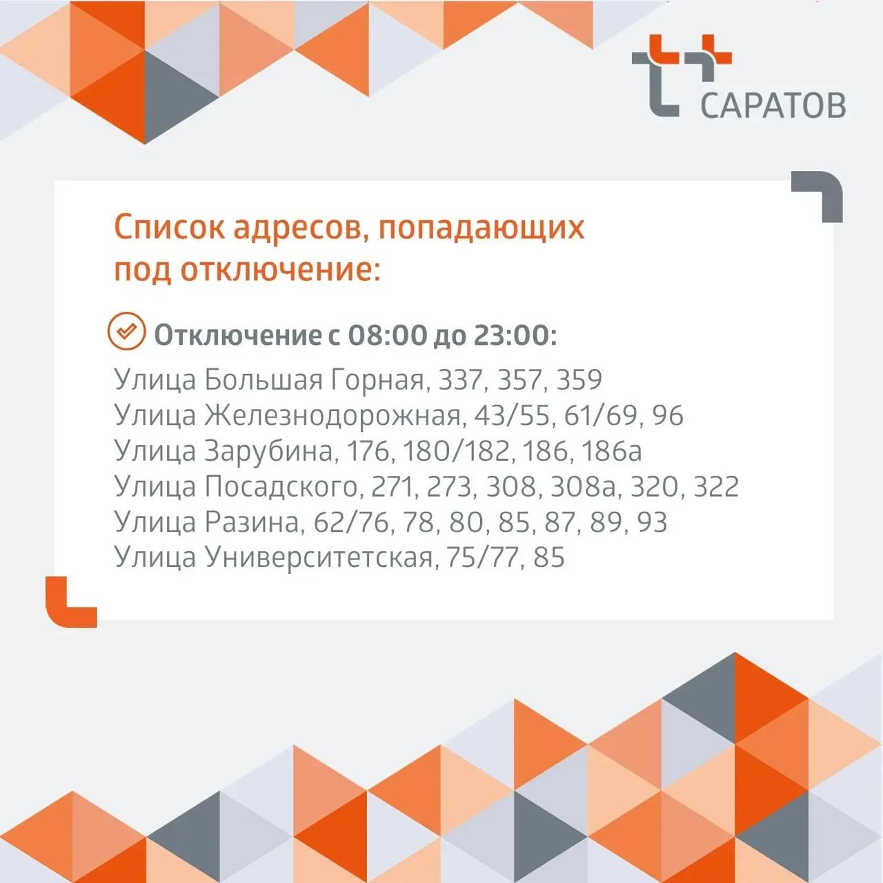 Будет ограничена подача горячей воды в некоторые дома Кировского и Ленинского районов Саратова.