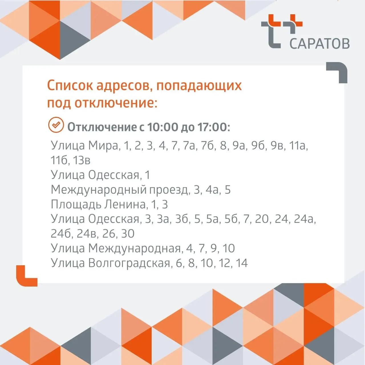 Адреса отключений и планируемое время окончания работ - в карточках