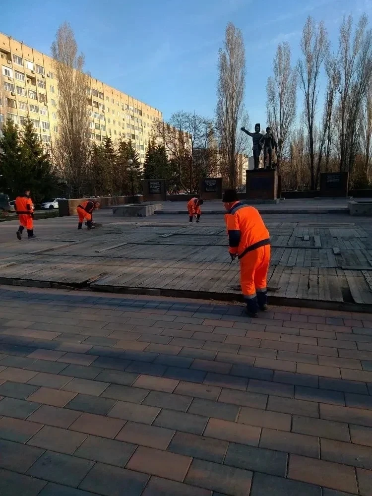 Сотрудники «Комбината благоустройства» приступили к расконсервации фонтанов в Балаково. В парке «Центральный» демонтировали деревянный настил со