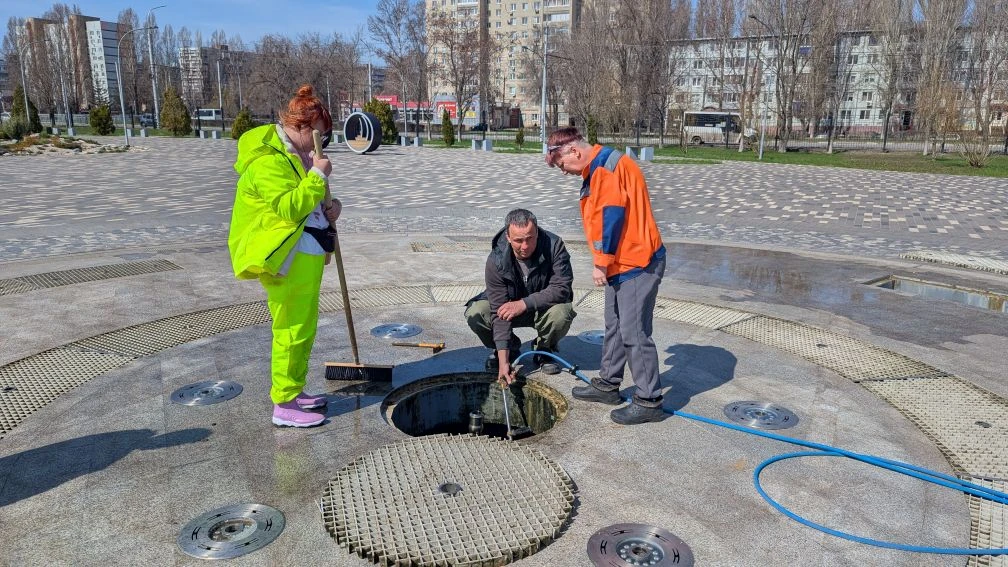 светодинамического фонтана. Сейчас там обслуживают оборудование. А в 6-м микрорайоне начали продувку и проверку систем. Сегодня рабочие также приступили к подготовке фонтана у монумента строителям пяти Всесоюзных ударных комсомольских строек.