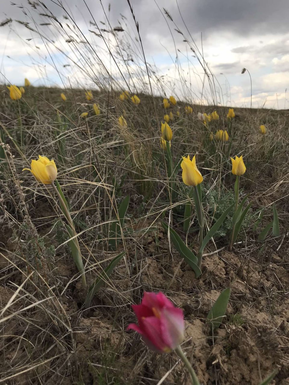 Именно весной (конец апреля - начало мая) в степях региона расцветают дикие тюльпаны. Это пестрый ковер посреди степных пейзажей. А еще в это время цветут красные степные пионы.