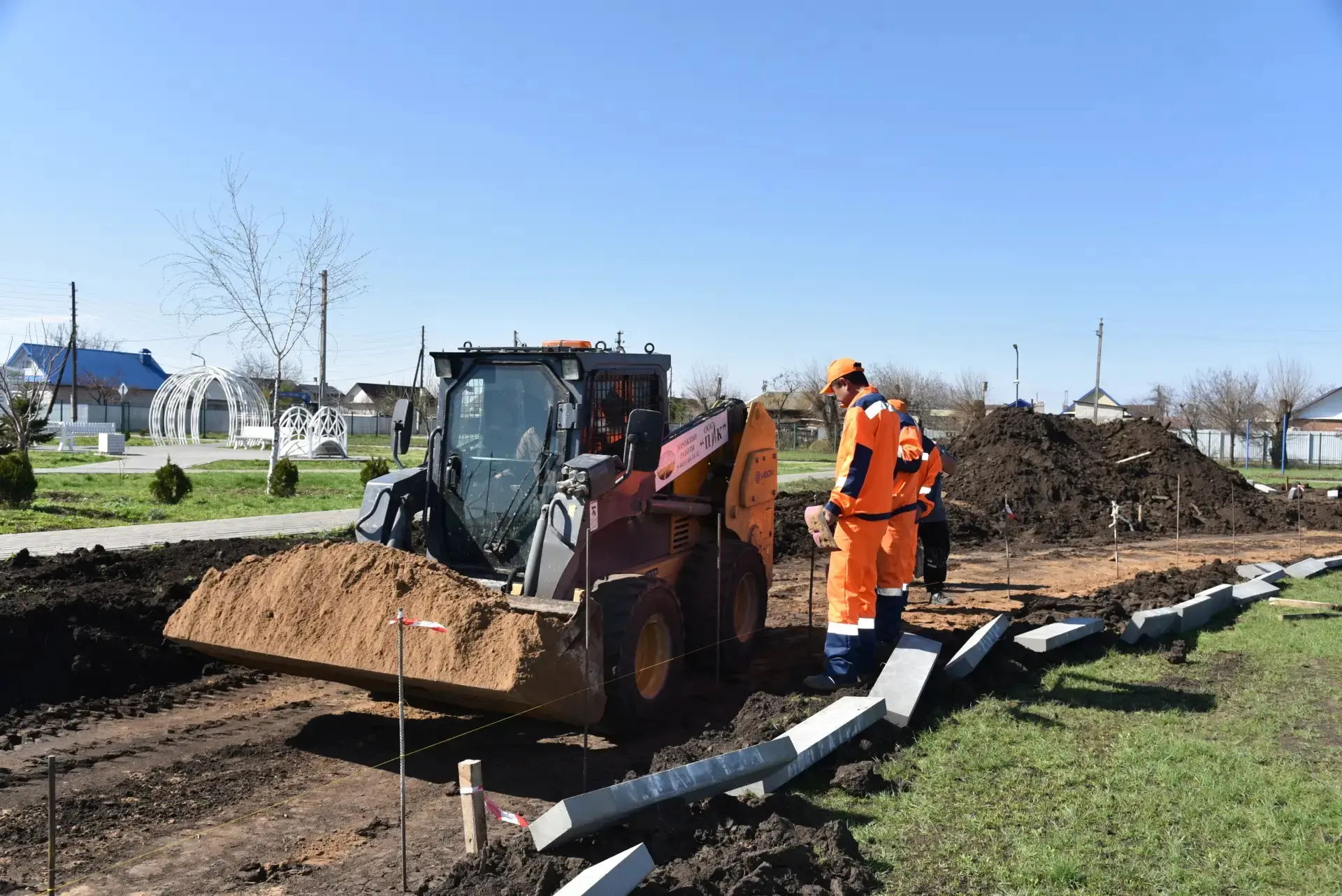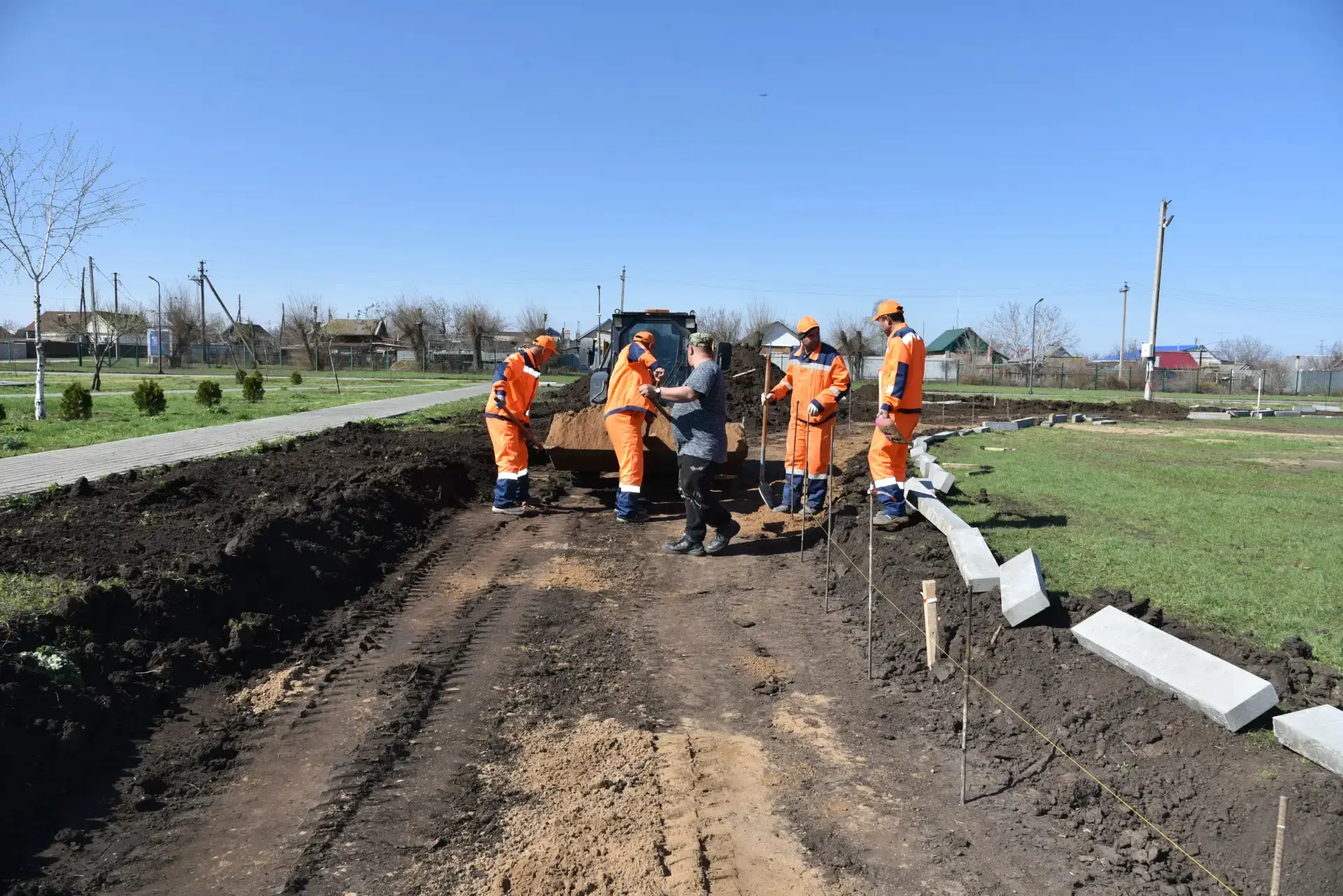 В настоящее время рабочие занимаются подготовительными работами: убирают грунт,завозят песок. После этого будет уложено асфальтобетонное покрытие. Работы планируется завершить к концу мая.