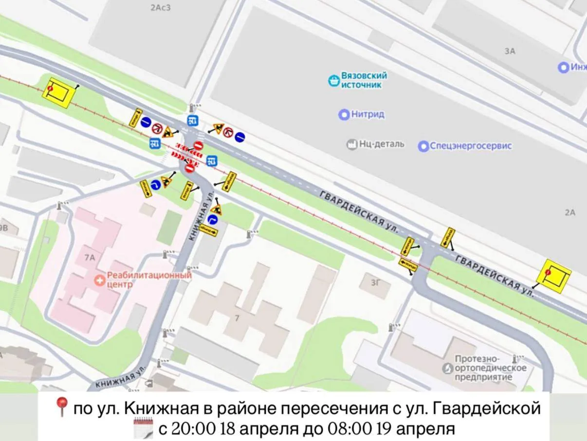 по ул. Книжная в районе пересечения с ул. Гвардейской