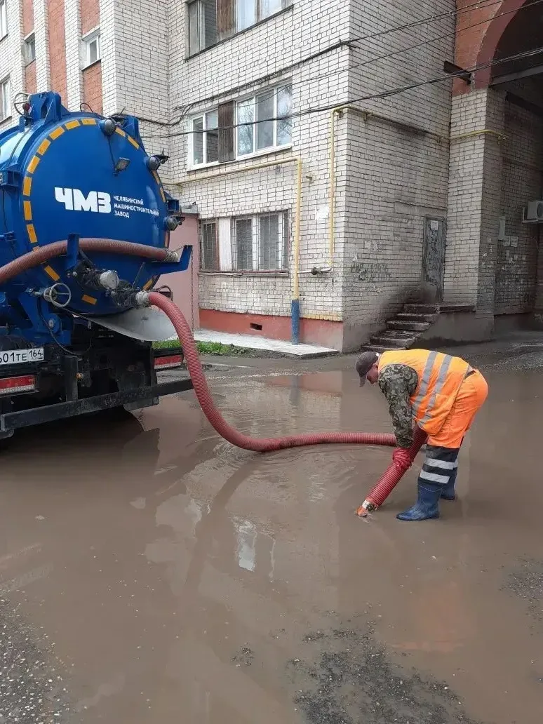 «Комбинат благоустройства» продолжает устранять подтопления на городских улицах и во дворах после дождей