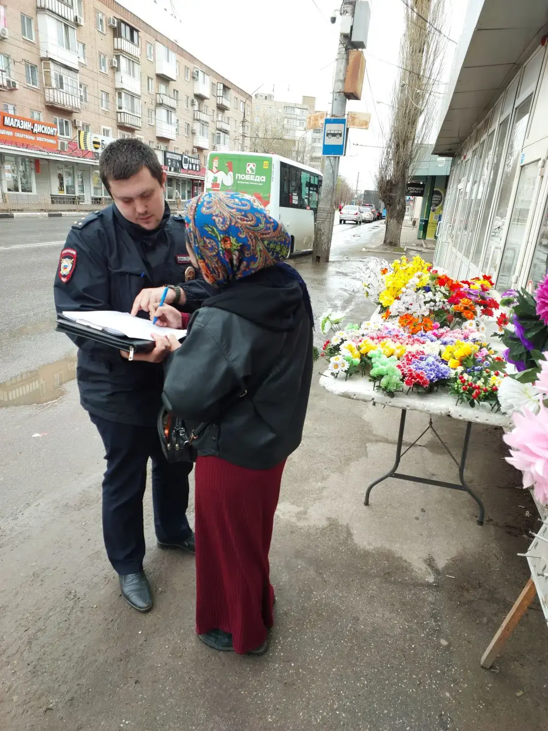 Сотрудники управления муниципального контроля и административной практики совместно со специалистами управления потребительского рынка и представителями правоохранительных органов провели выездное мероприятие по просп. Строителей, где был установлен факт незаконной продажи цветочной продукции.