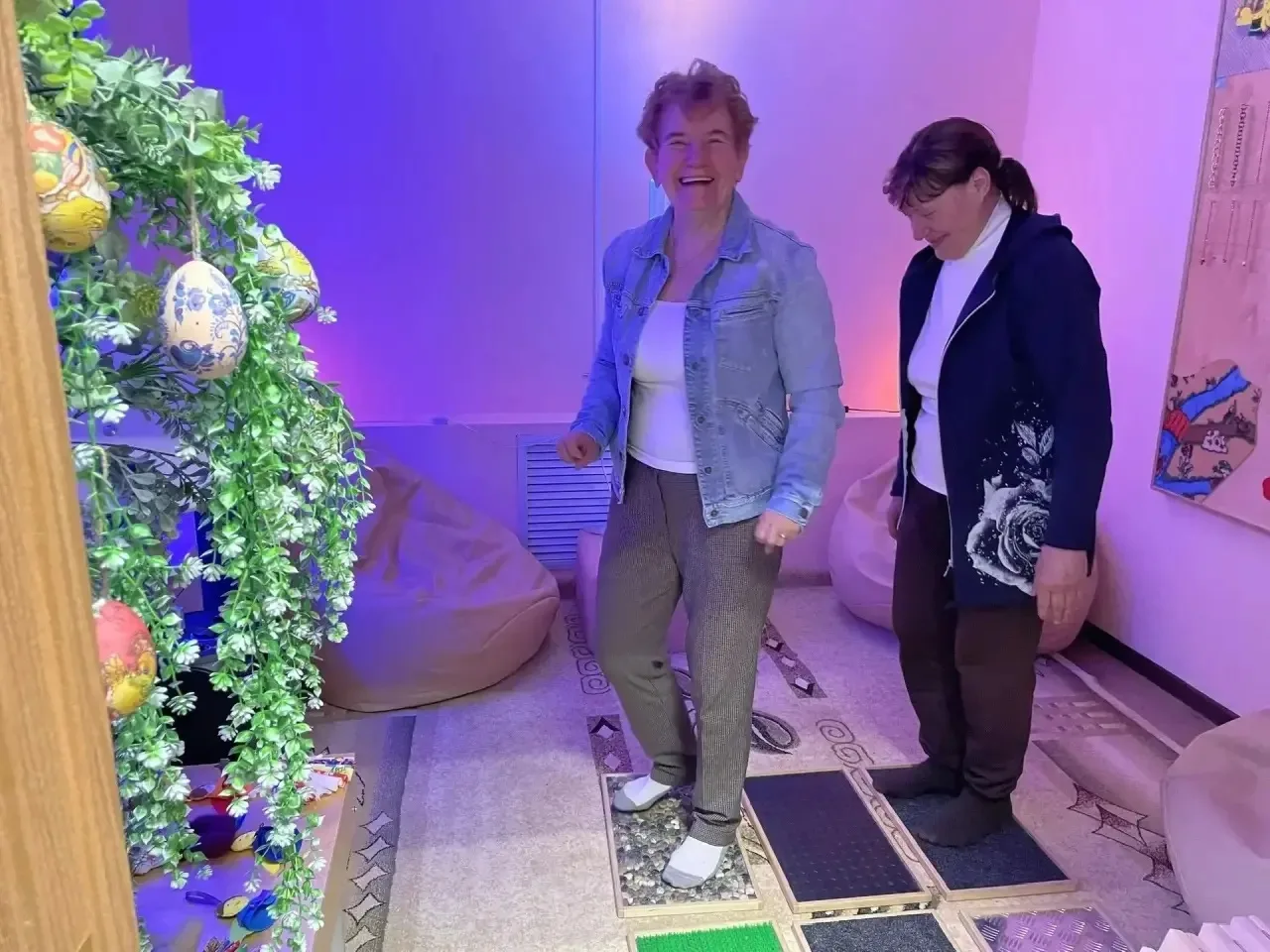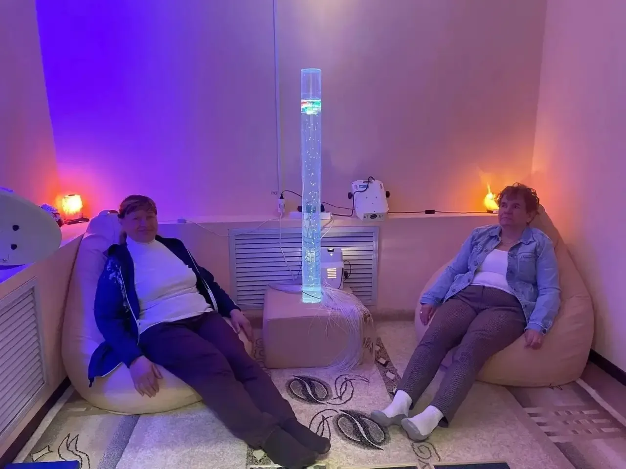 Посещение сенсорной комнаты с современным оборудованием для снятия стресса и усталости.