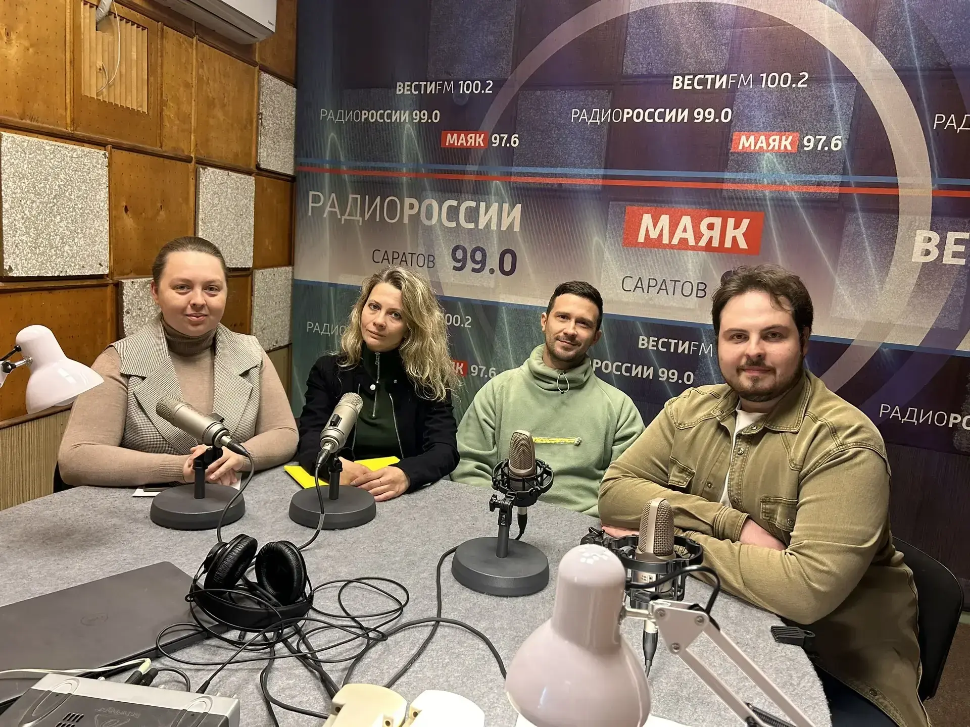 Гости – директор Центра «Мой бизнес» Саратовской области Екатерина Асташкина, специалист Центра поддержки системы маркировки «Честный знак» Марина Герасимова и индивидуальный предприниматель Михаил Боровков.