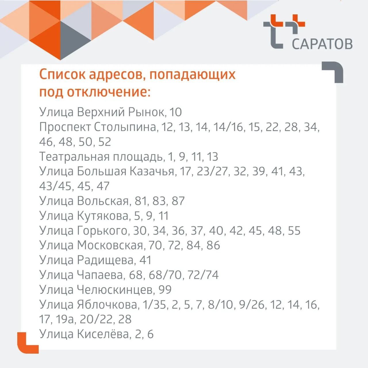 Адреса отключений - в карточке