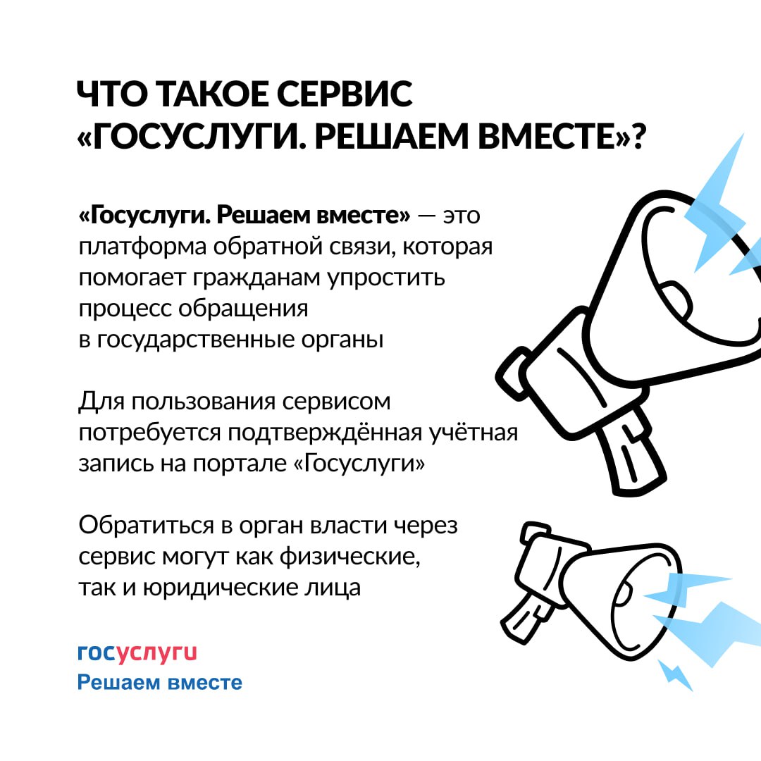 Направить сообщение о проблеме или оставить обращение с предложением в органы власти или организации можно через портал Госуслуги. В карточках подробно рассказали о сервисе «Госуслуги.Решаем вместе» или Платформе обратной связи, в чем разница между сообщениями и обращениями, а также о сроках их рассмотрения и способах подачи.