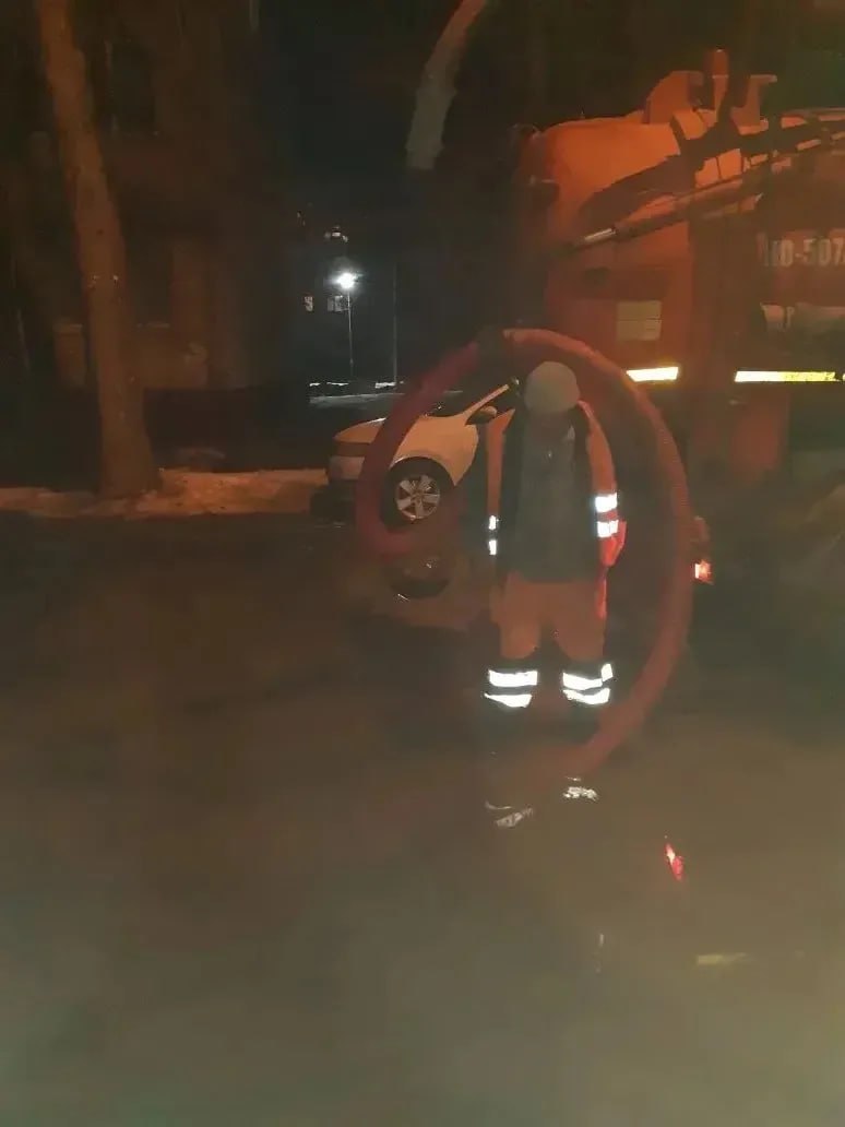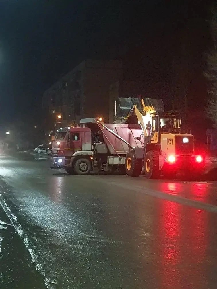 Ночью тяжелая техника вывозила снег с улицы Заводская и Проспект Героев. Также с помощью специализированной машины производилась откачка талых вод с улиц Шевченко и Заречная.