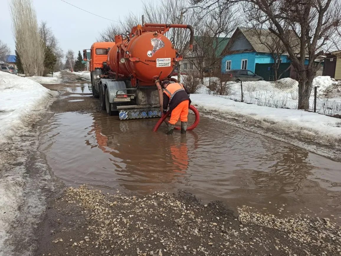 Коммунальные службы продолжают откачивать талые воды на улицах города Балаково