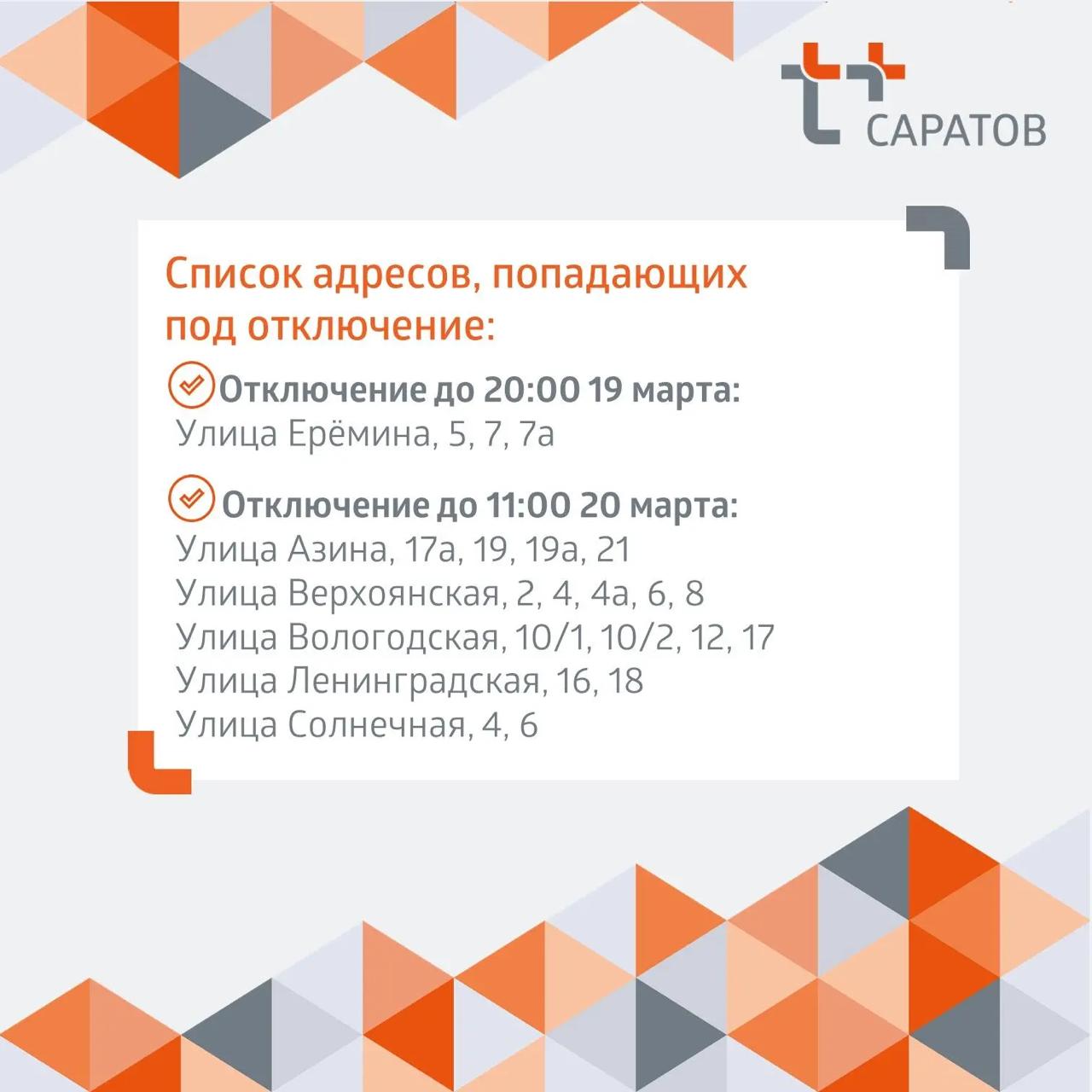 Отключение тепла и горячей воды в Саратове