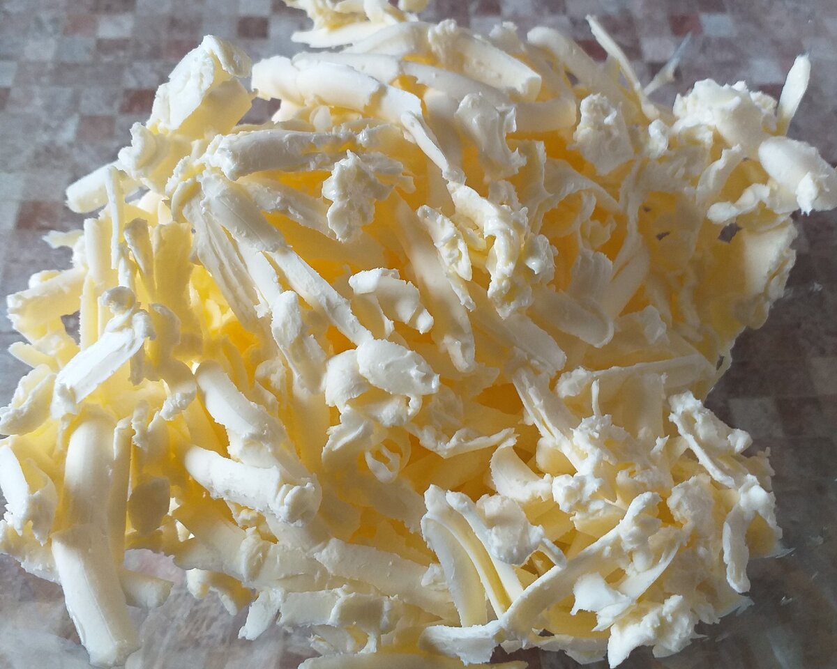 Начинаем с подготовки. Замороженное сливочное масло или маргарин, а также плавленые сырки рекомендуется ненадолго поместить в морозильник. Это значительно упростит их натирку.