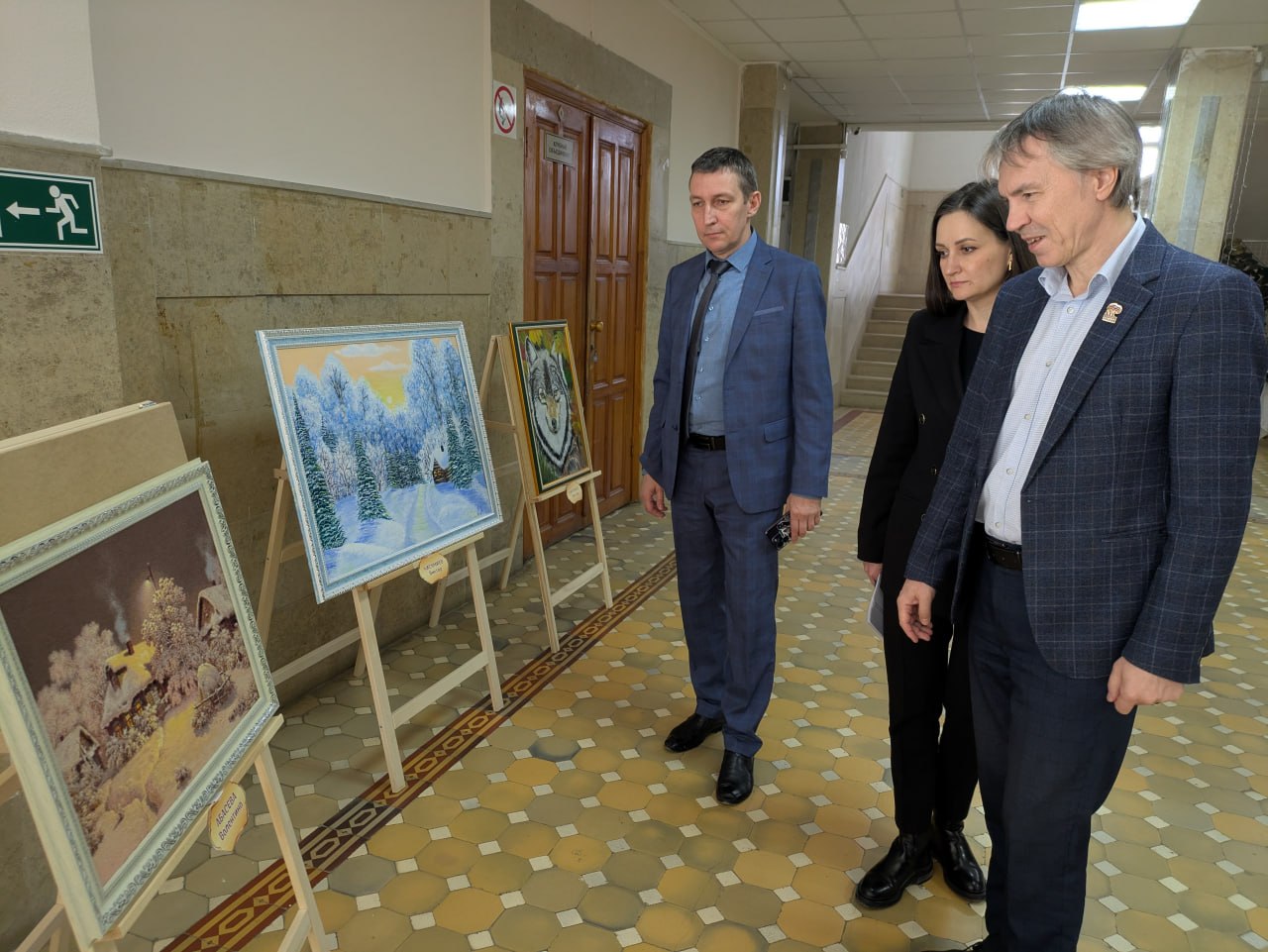 Перед началом заседания актива Шихан в фойе Дома культуры с главой Шихан Антоном Лещенко осмотрели выставку художественных изделий местных мастеров от мало до велика. Особенно впечатлили панно с вышитыми картинами и изделия местного резчика по дереву Александра Давыдкина, который создал шедевры.