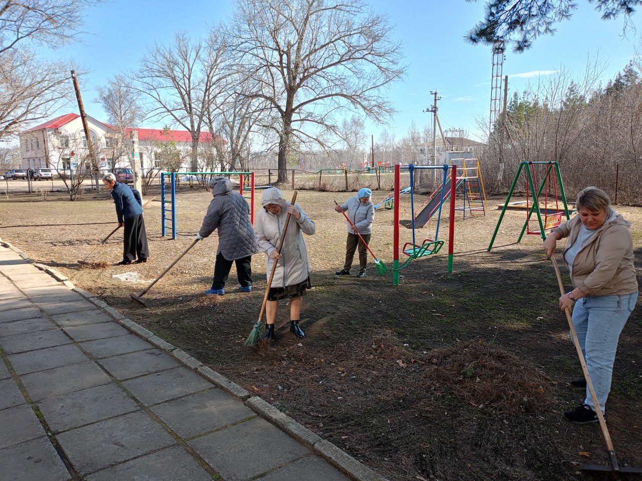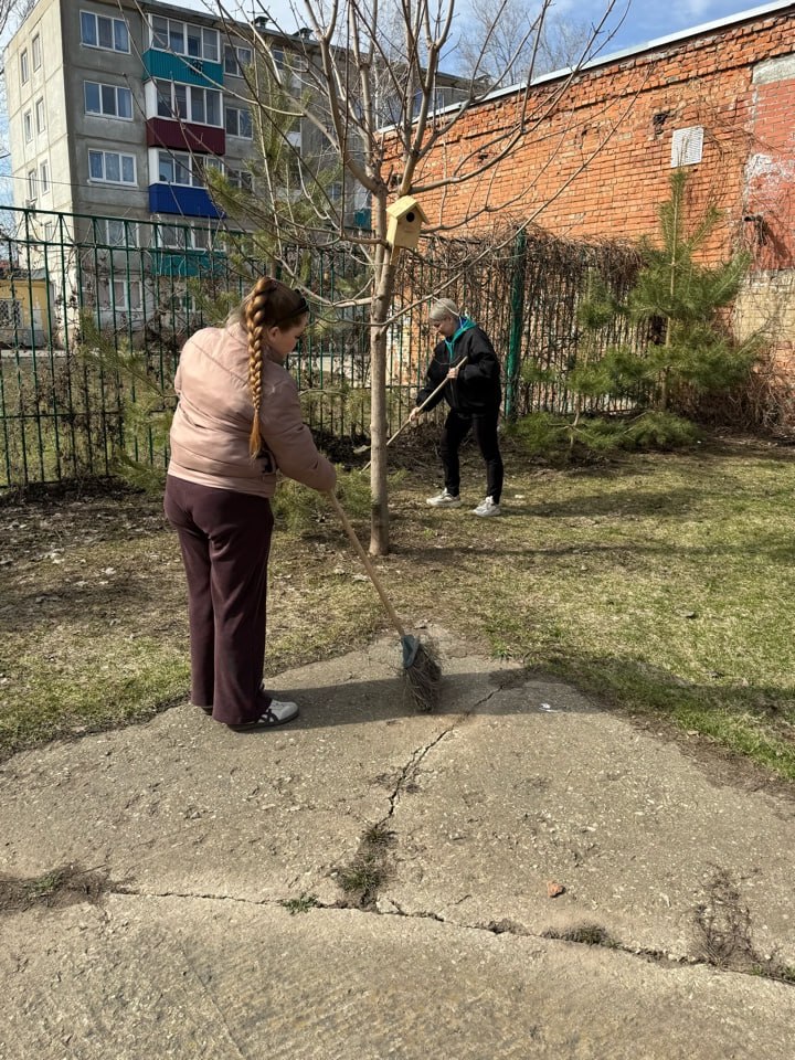 Детские сады и школы активно включились в уборку территорий после зимы.