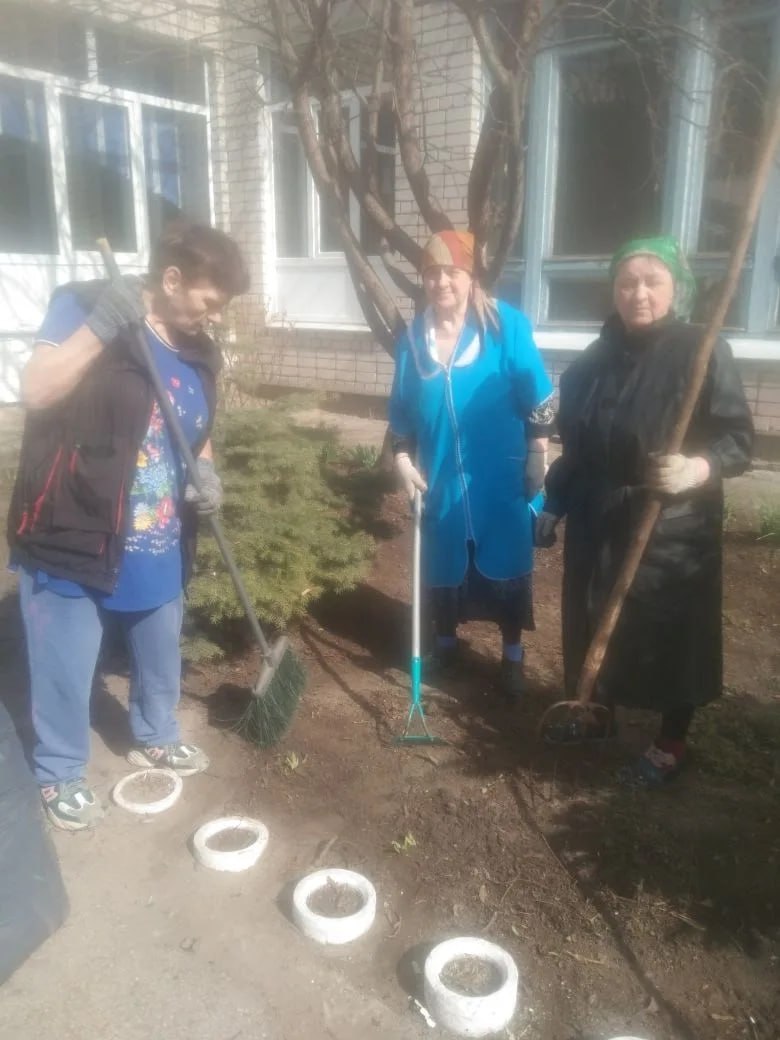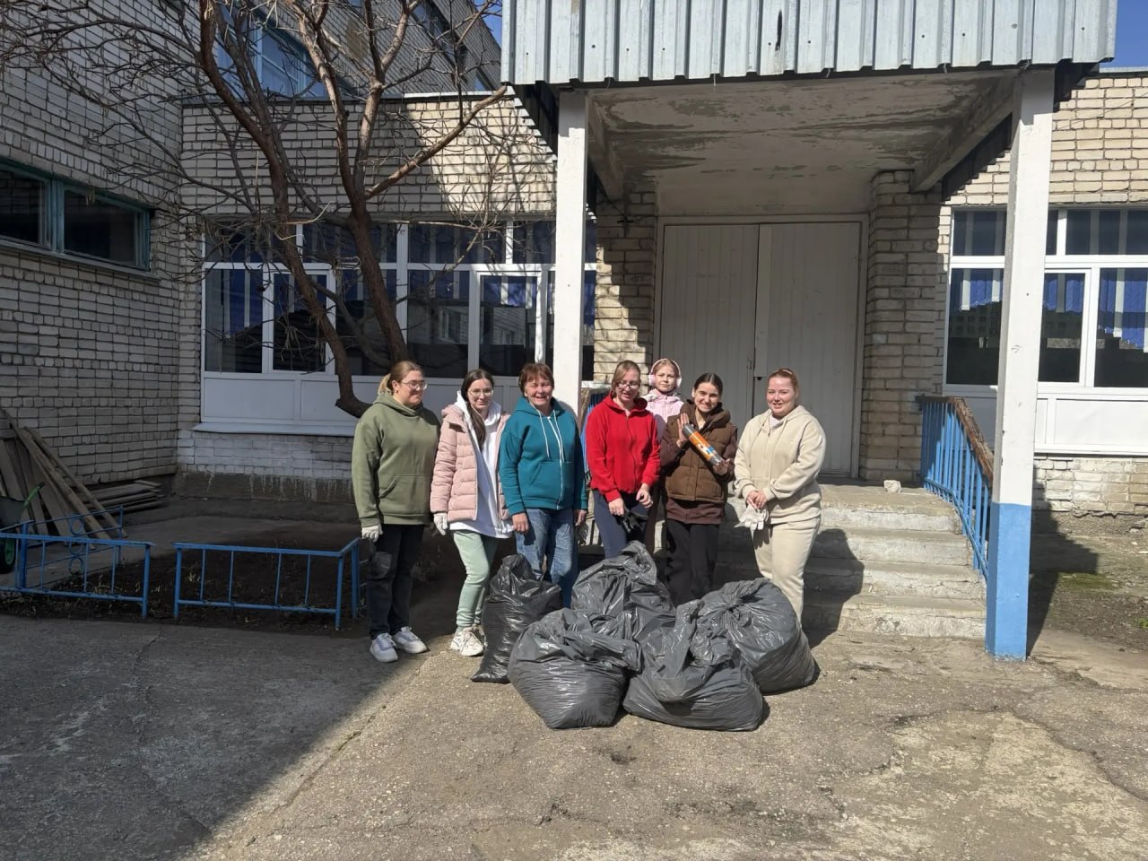Сотрудники и педагоги школы №18 и школы села Плеханы, а также детских садов №16 и №9 присоединились к месячнику по благоустройству, объявленному губернатором Саратовской области Романом Бусаргиным.