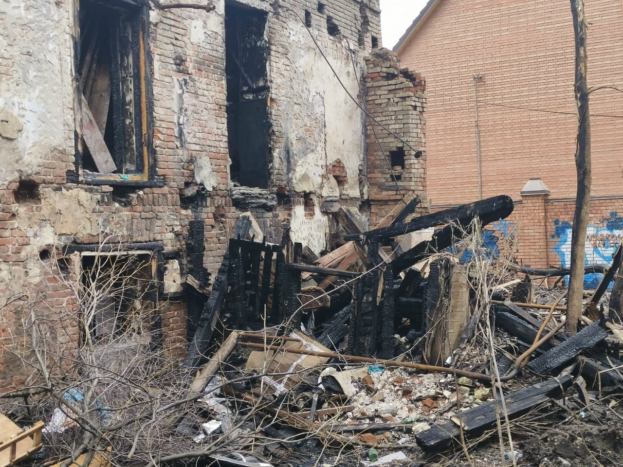В центре Саратова сгоревший дом-памятник превратили в свалку елок