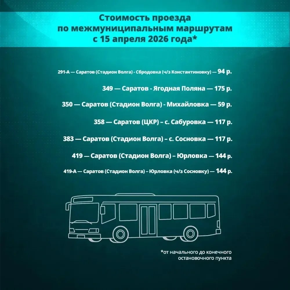 С 15 апреля в Саратовской области актуализируют стоимость проезда на ряде межмуниципальных автобусных маршрутов, в электричках и на речных судах.
