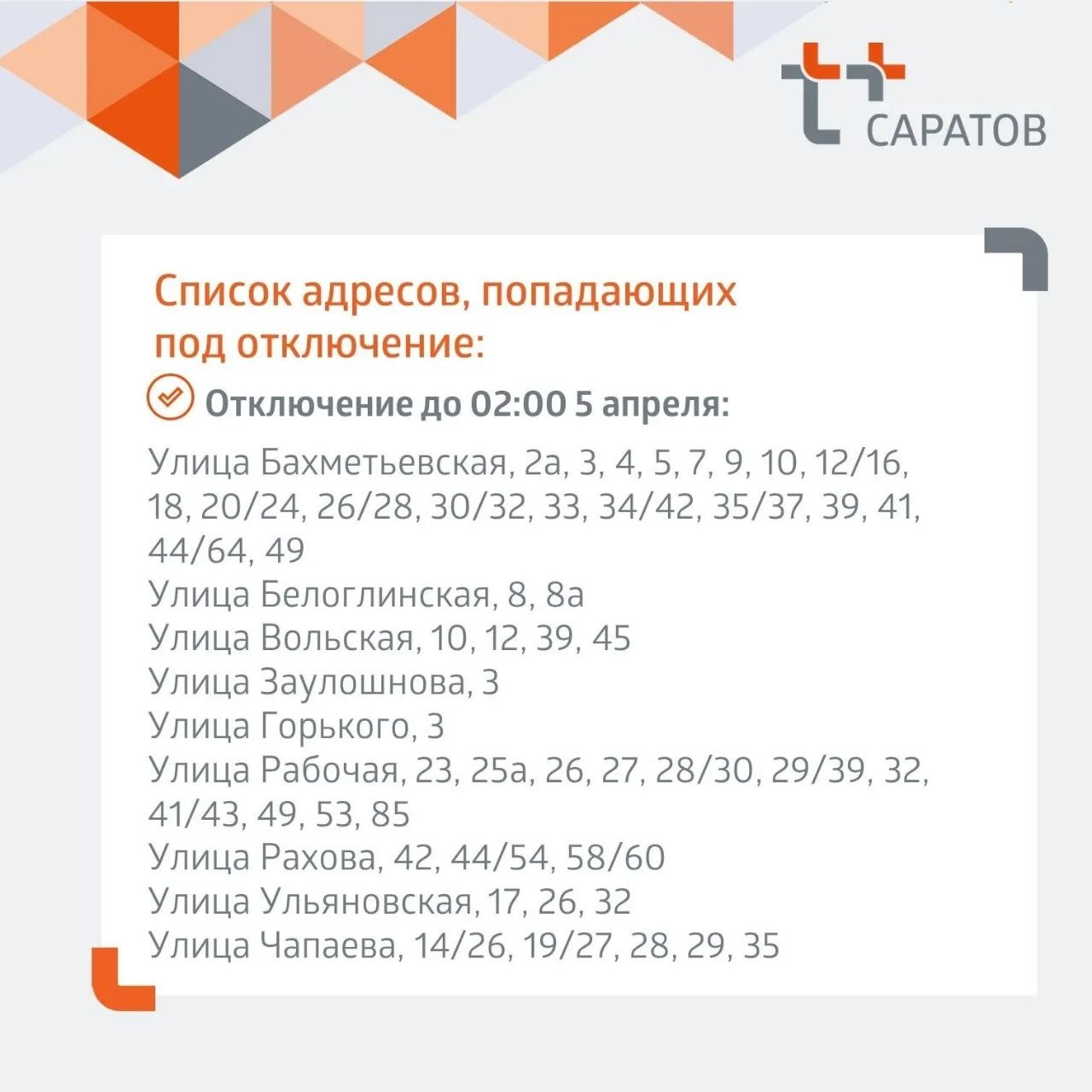 Адреса отключений и планируемое время окончания работ - в карточках