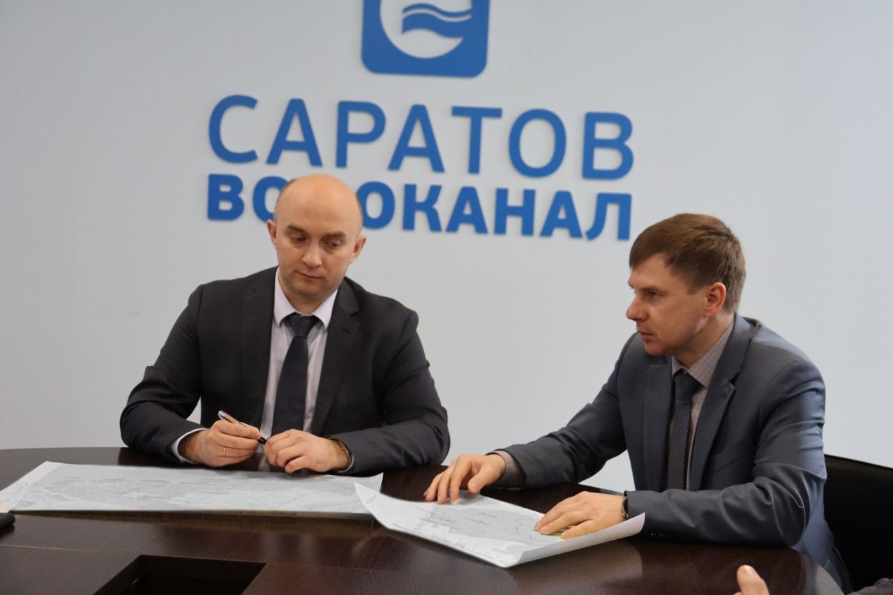 Председатель комитета по ЖКХ Алексей Сидоров и генеральный директор МУПП «Саратовводоканал» Павел Зайцев обсудили потенциальные риски, связанные с выполнением работ на магистральном водоводе.