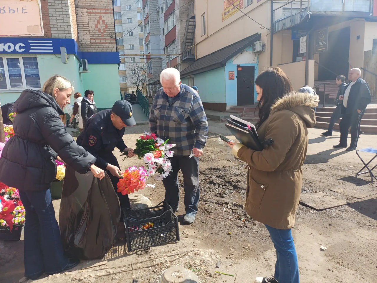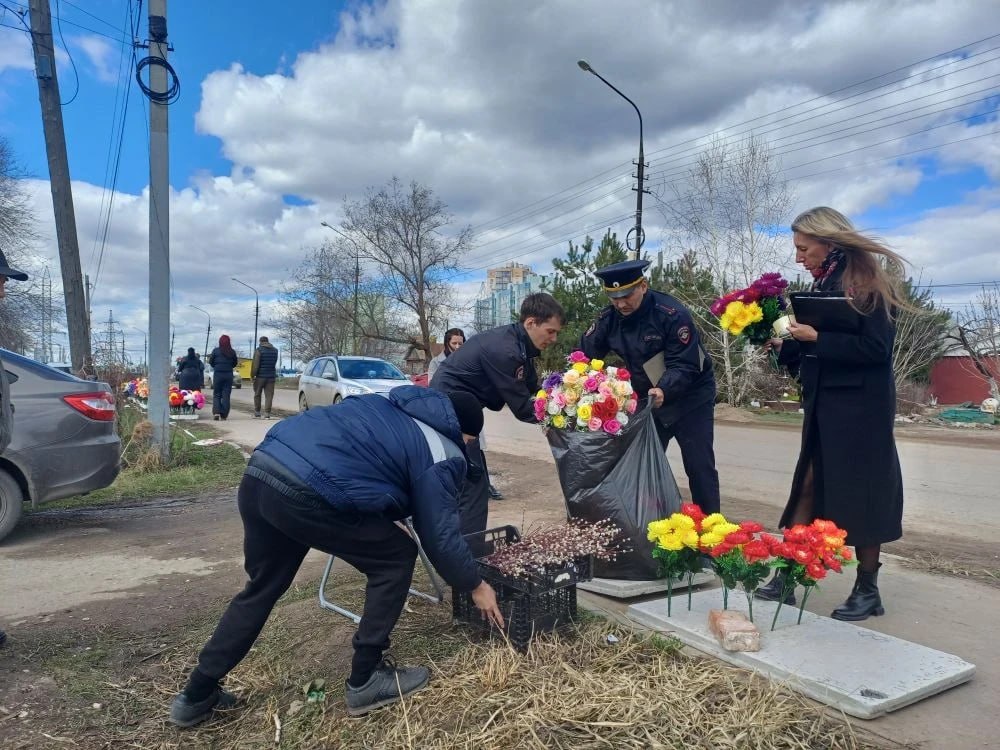 В рамках совместного выездного мероприятия, проведенного сотрудниками управления муниципального контроля, управления развития потребительского рынка и представителями правоохранительных органов на 1-м Геологическом проезде, вблизи Восточного кладбища и в районе дома №5 4-го квартала в рп. Приволжский была обнаружена несанкционированная продажа цветочной продукции.