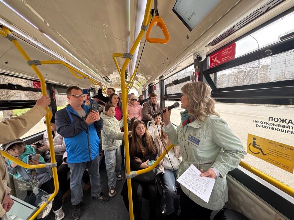 Пассажиры проехали по «космическим улицам» Балакова и узнали их историю. Увидели космические мотивы в городской среде — в названиях, памятниках, артобъектах.