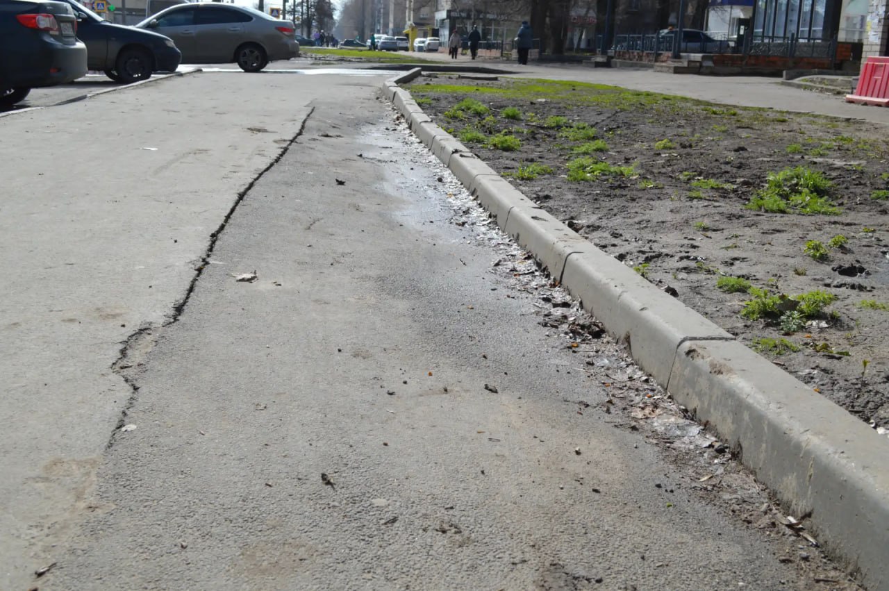 На одном из адресов по улице Минской были обнаружены повреждения: разрушен бордюрный камень и часть тротуара. Работы здесь выполняла компания ПАО «Т Плюс» поздней осенью 2025 года. По другим адресам на Минской, где вскрышные работы проводились в 2023 и 2025 годах, асфальт просел, образовались трещины.