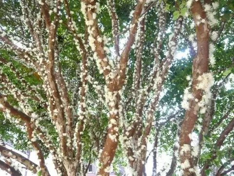 Цветы: Цветение этого дерева — настоящее чудо. Маленькие белые цветки появляются непосредственно на стволе и ветвях, создавая запах, который приятно напоминает о свежести и легкости тропического климата.