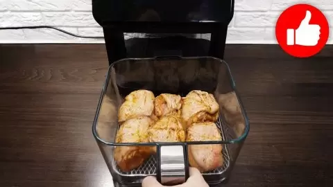 2. После маринования выложить курицу на нижнюю решетку аэрогриля. Решетку не нужно смазывать дополнительно, так как масло уже добавлено к курице.