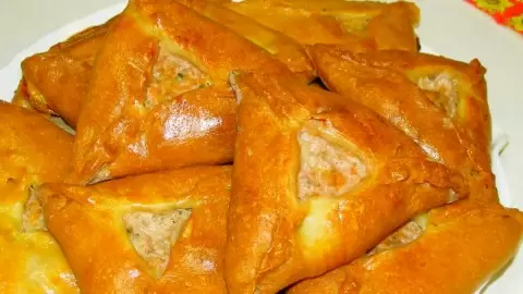 Из теста формируются треугольнички, в которые выкладывается начинка, и они отправляются в духовку. Как результат, блюдо получается не только красивым, но и безумно вкусным. Это отличное дополнение к любому обеду или ужину. Пробуйте готовить этот лакомый десерт на своей кухне!