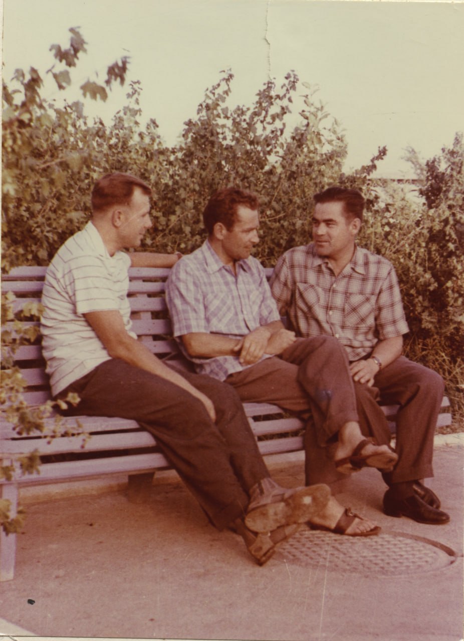 Сочи Июнь 1962 г. (7); Юрий Алексеевич Гагарин, Валентина Владимировна Терешкова и Андриян Григорьевич Николаев на улице Звездного