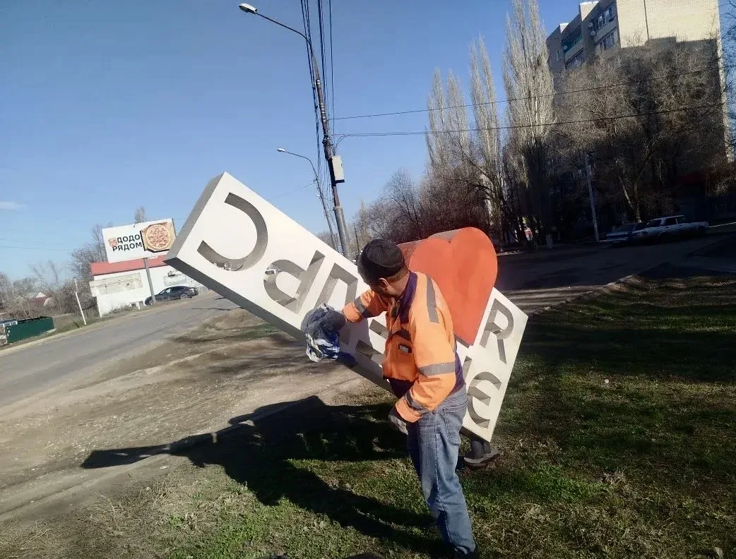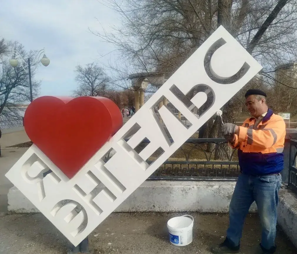 С марта текущего года мы начали обновлять стелы «Я люблю Энгельс». Сотрудники бережно очищают конструкцию от прошлогодней краски, удаляют дефекты и красят. Очищают зеленые зоны вблизи стел.