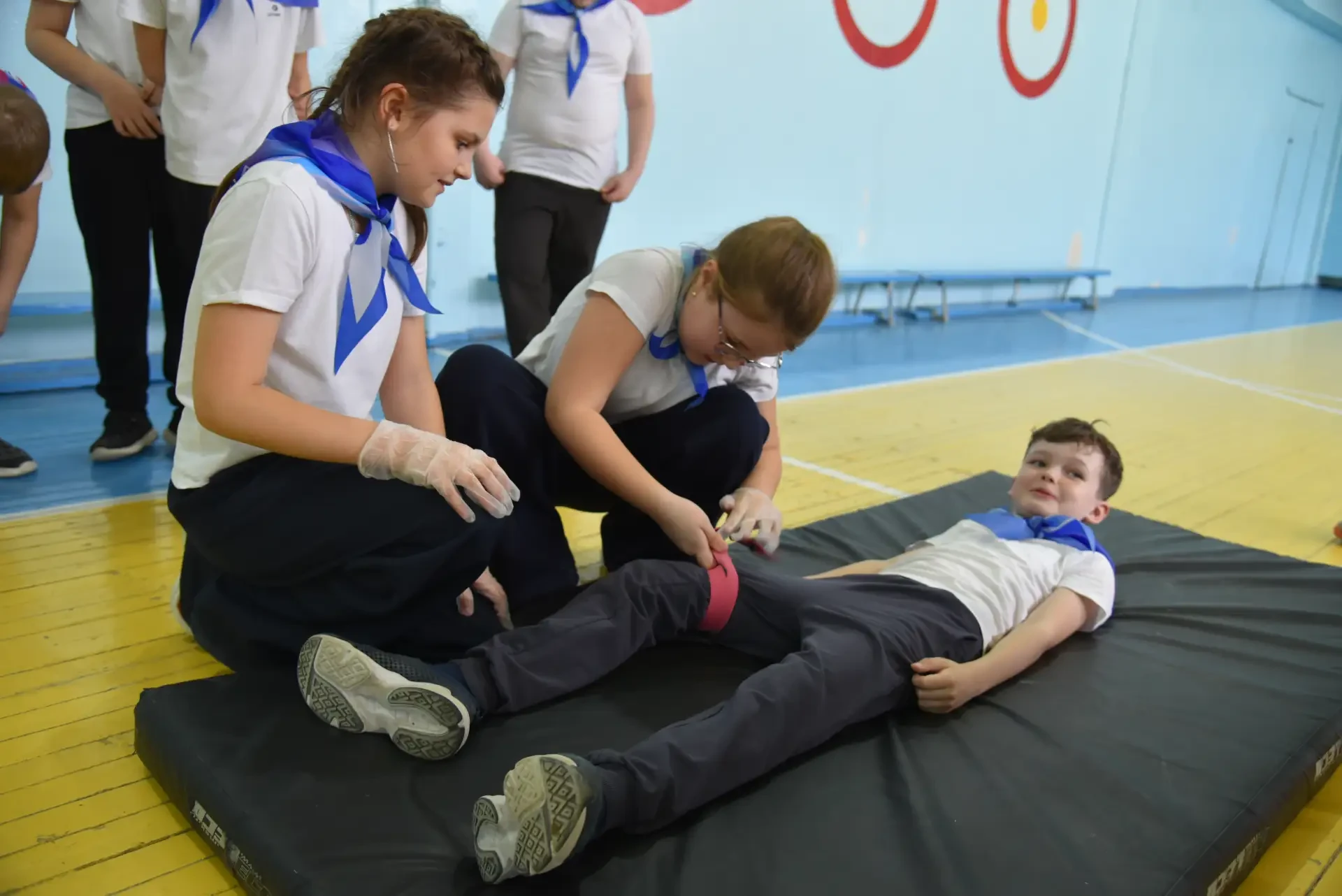 Команды получили маршрутные листы с описанием всех испытаний. Участникам предстояло за 15 минут оказать первую помощь пострадавшему однокласснику, продемонстрировать знания по истории России, показать строевую подготовку и принять участие в игре «снайпер», где нужно было мячом за определённое время выбить как можно больше соперников.