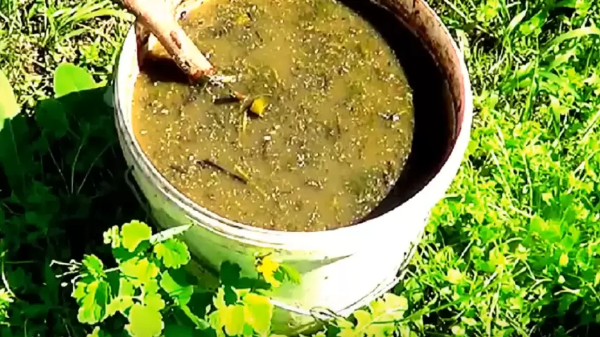 - Приготовить настой из 2 кг свежей крапивы и 1,5 кг других растений. Наполнить 50 литрами воды и добавить соду. Настаивать 5–7 дней.