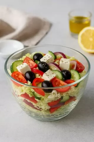 Каждый Новый год традиционные салаты, такие как "Оливье" или "Селёдка под шубой", занимают центральное место на праздничных столах. Однако стоит ли ограничиваться классикой, когда есть возможность удивить гостей чем-то новым и освежающим? Греческий салат с пекинской капустой — это не только легкий и яркий вариант, но и настоящая находка для праздничного меню. Он легко готовится, а его ингредиенты доступны круглый год, что делает его идеальным выбором для новогоднего стола.