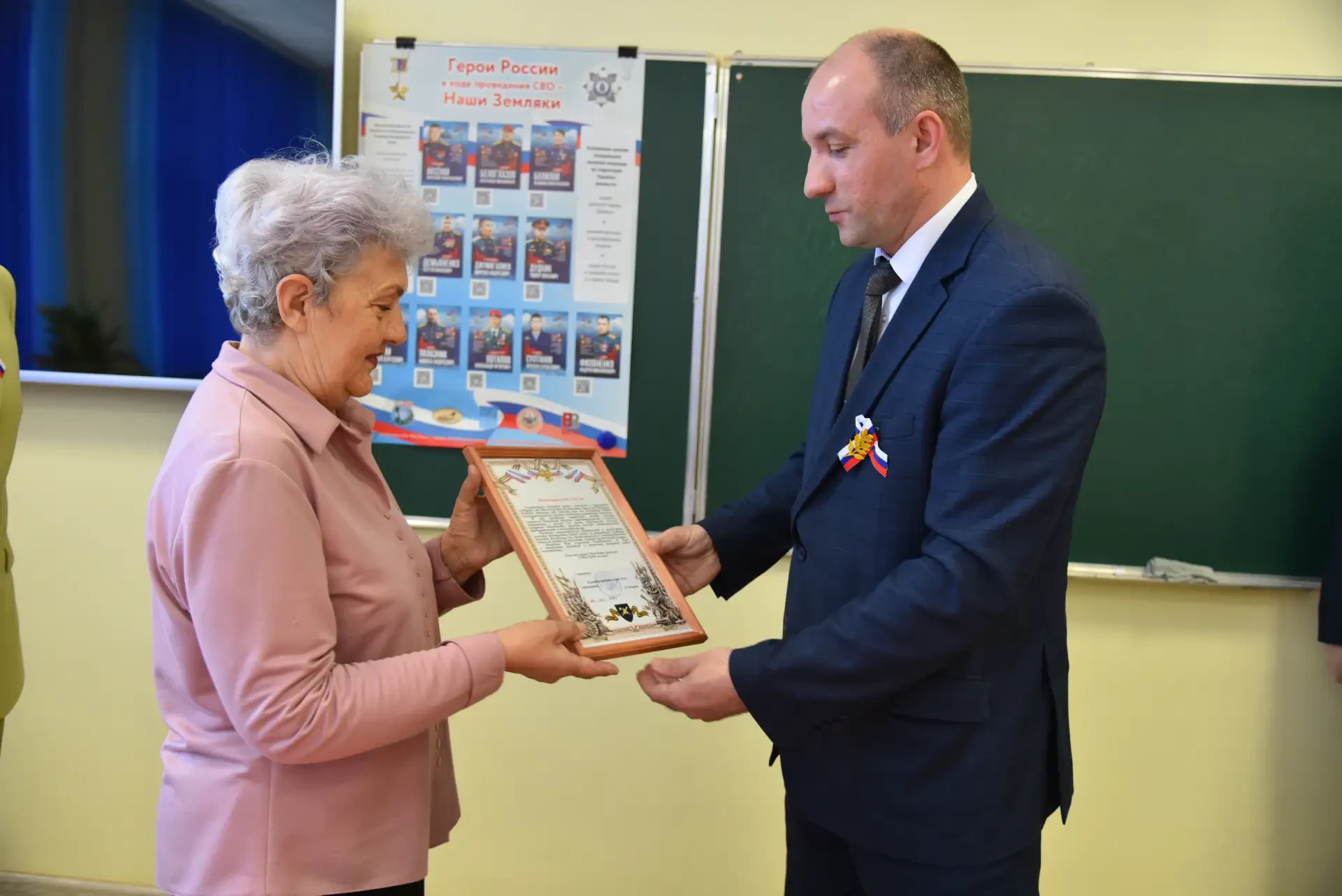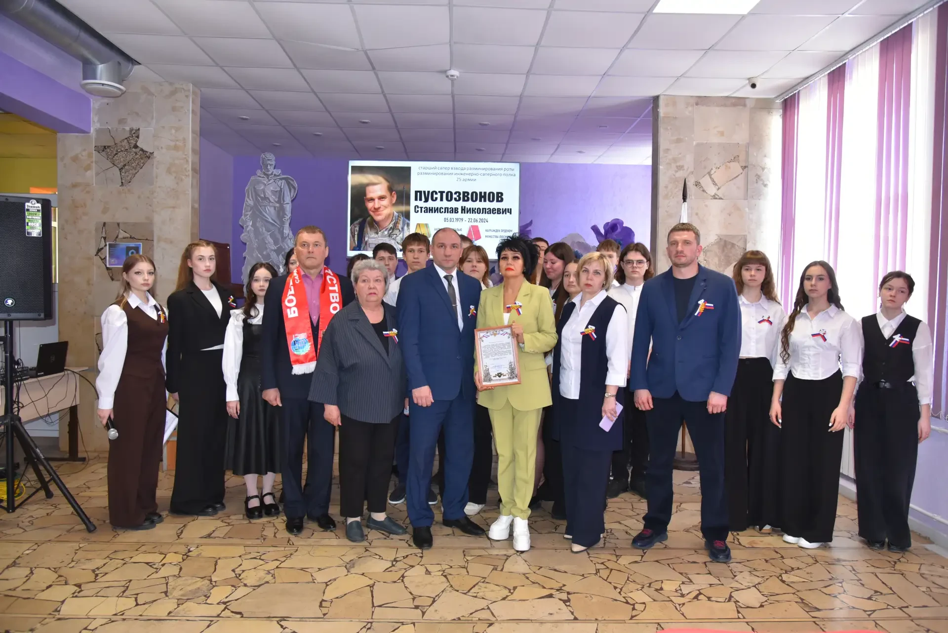 Михаил Попов вручил руководству школы благодарственное письмо от командира части, в которой служил Станислав Пустозвонов. Также от имени министерства образования области и от себя лично он выразил благодарность коллективу школы за значительный вклад в патриотическое воспитание школьников.