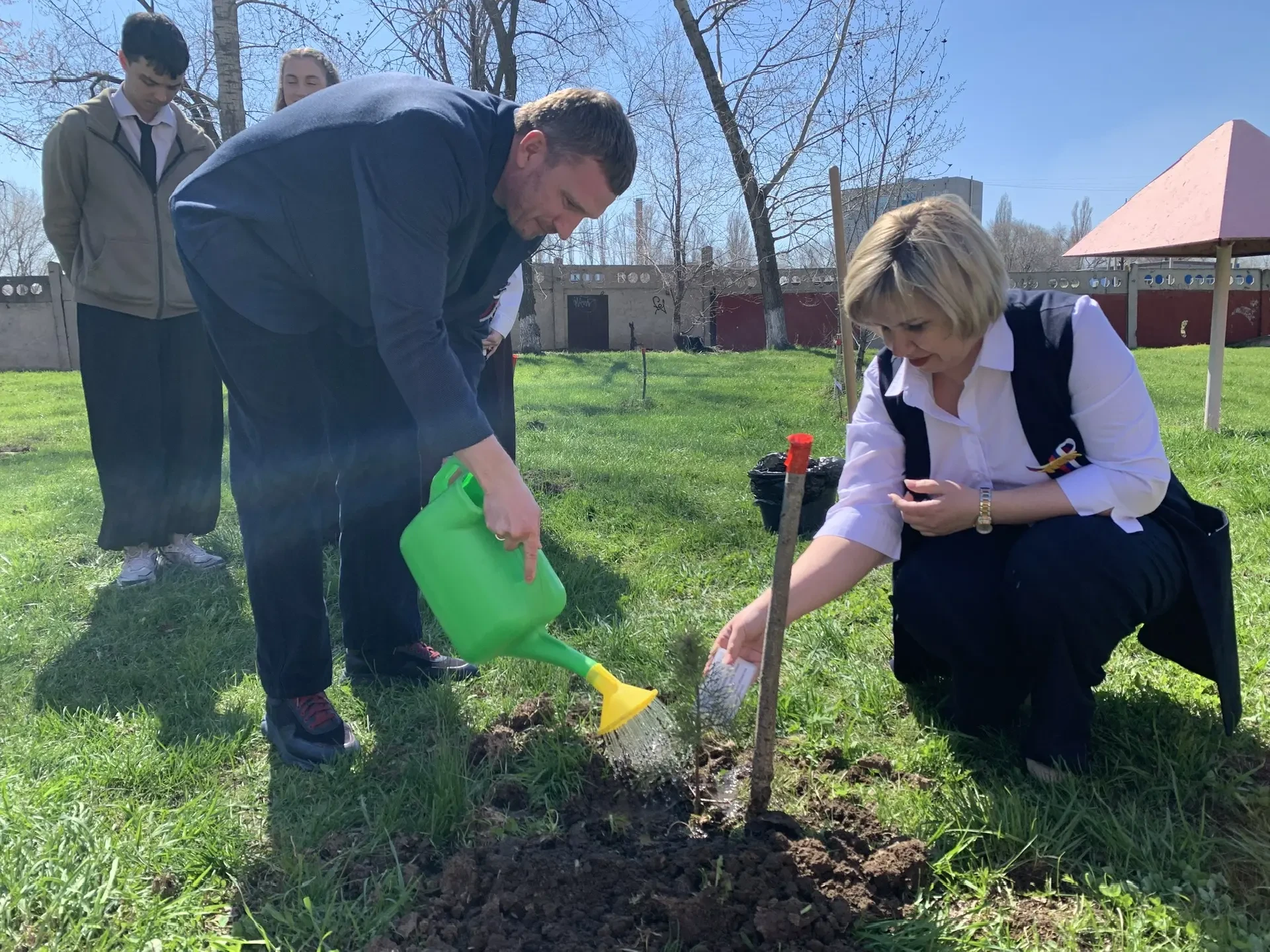 Памятное мероприятие завершилось высадкой сосны во дворе школы на Аллее славы в память о герое, ученике школы — Станиславе Николаевиче Пустозвонове.