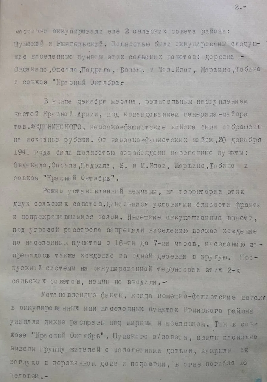 «Немцы насильно вывели группу жителей с малолетними детьми, закрыли их наглухо в деревянном доме и подожгли. В огне погибло 16 человек».
